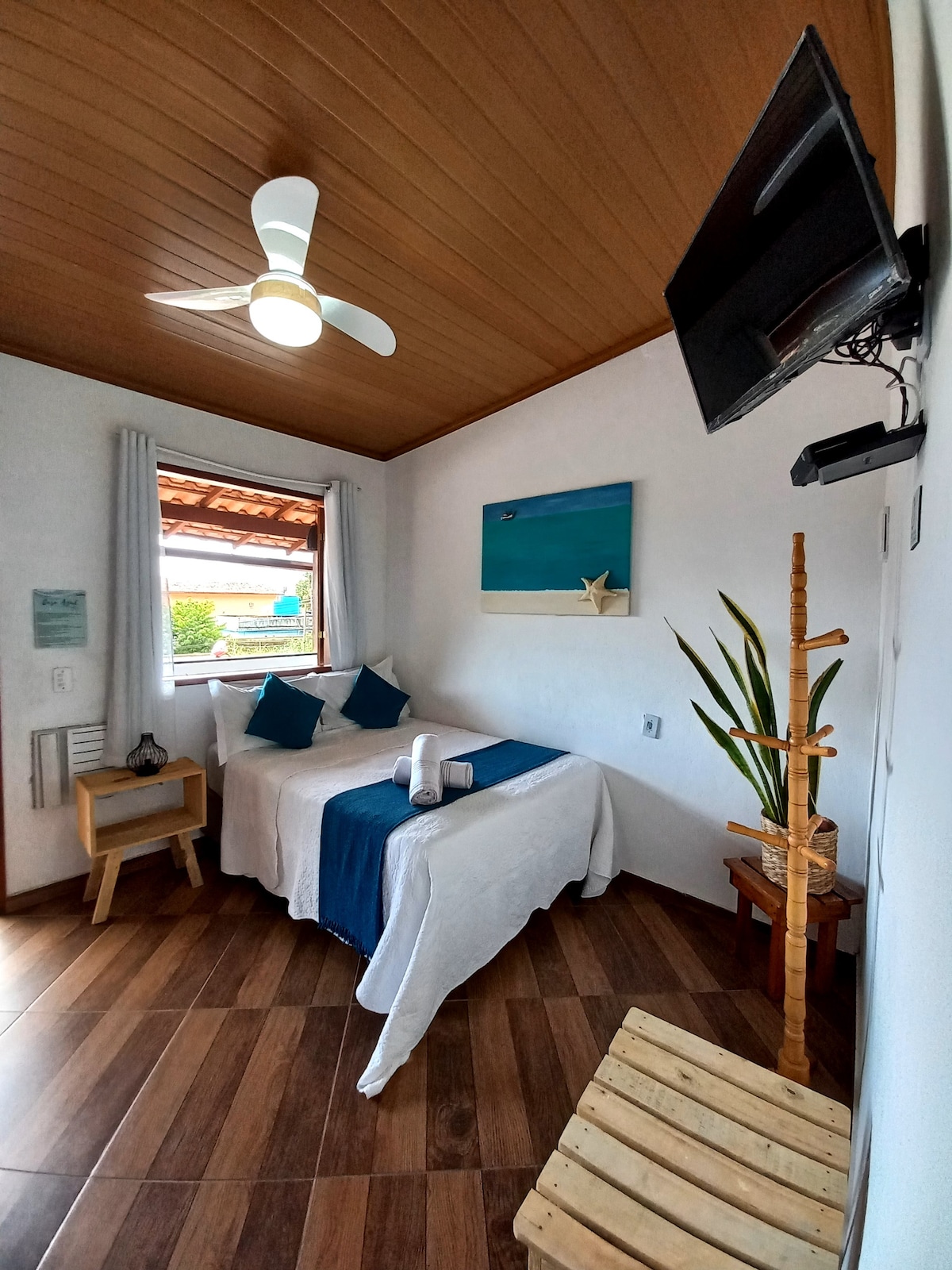 Abrace a simplicidade neste lugar tranquilo e bem-localizado. A suíte n° 2 fica numa vila a 10 metros de distância do Cais de Turismo, na rua da praia, em frente ao totem Eu ❤ Ilha Grande, perto de tudo e sem ladeira! Possui cama de casal, treliche, banheiro privativo, frigobar, ventilador e varanda. Ainda tem 10 % de desconto nos principais passeios da Ilha. É muita vantagem, aproveite! ⚠️ Antes de reservar, leia com atenção as OBSERVAÇÕES e REGRAS da suite 😉