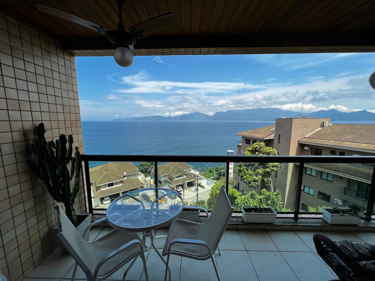 Minha casa, um pequeno apartamento de frente ao mar, aconchegante, próximo a todos os comércios, no centro da Vila. Para o Réveillon terá a possibilidade de ver os fogos da janela de casa. Eu vivo nessa casa então ela está equipada com todos os utensílios de cozinha menos o micro-ondas. Mas tem um forninho elétrico. Tenho frescobol e bolsa a prova d’água. Estamos no centro 1 minuto do cais. Fácil acesso. Também contamos com chuveiro de água quente elétrico, simples, não é uma super ducha, bom!