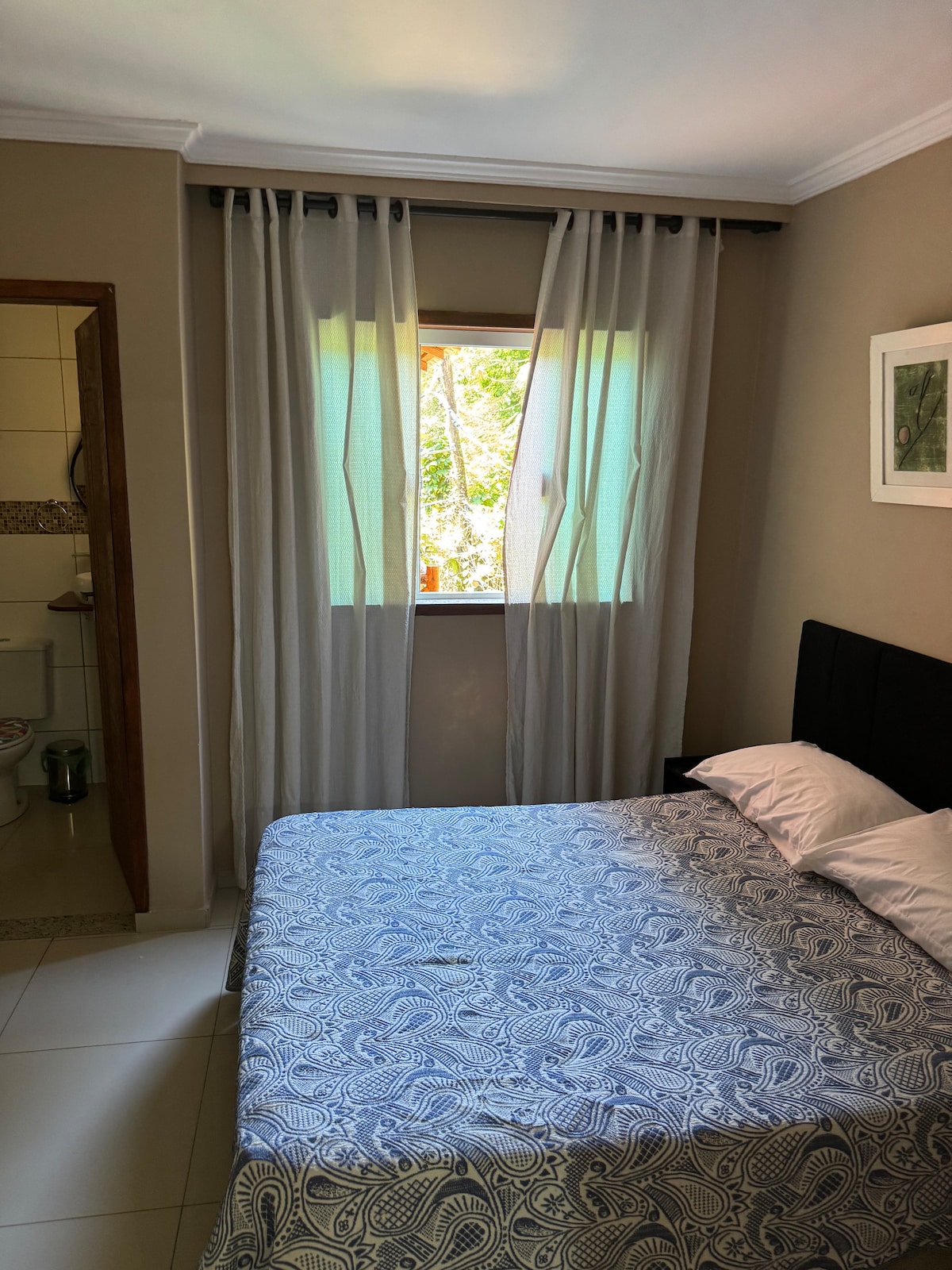Excelente localização, sem morros. Estamos na rua principal, menos de 10 min do centro e a poucos metros da praia, onde estão os melhores restaurantes e bares. Oferecemos ar condicionado, wifi, frigobar, micro-ondas, sanduicheira, cafeteira, utensílios básicos, pia, roupa de cama e banho, banheiro privativo, varal e área externa. A Suíte possui uma cama de casal, uma cama de solteiro e uma cama auxiliar (estilo gaveta). Ambiente tranquilo, confortável e moderno. Garantimos fidelidade às fotos.