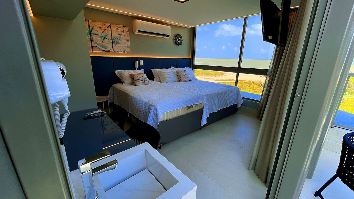 Relaxe neste lugar único e tranquilo! Loft novo, recém mobiliado, em frente ao mar do Bessa, perfeito para famílias pequenas (até 4 pessoas) ou para viajantes individuais. Está dividido da seguinte maneira: suíte de casal com cama queen com smart TV e estação de trabalho, cozinha completa com principais utensílios, sala-de-estar que possui um sofá-cama tamanho cama de casal, smart TV e uma varanda frente mar deliciosa com uma belíssima vista do primeiro amanhecer das Américas.
