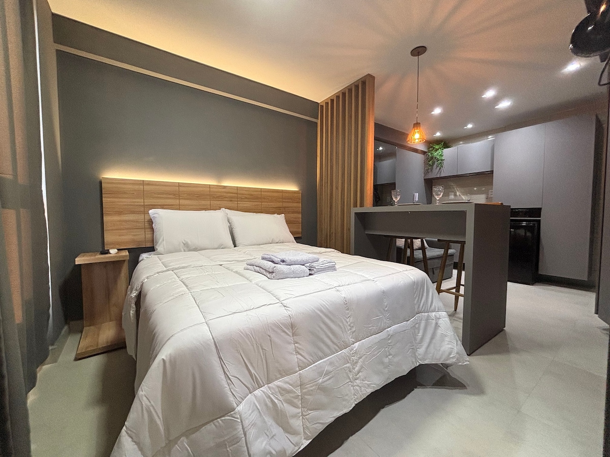 Our Apto Luxo Frente Mar #1 with parking space and capacity to accommodate up to 5 people. It features 2 queen beds, a sofa bed in the living room, air conditioning, and a Smart TV in each room. The kitchen is compact and includes a cooktop, microwave, coffee maker, sandwich maker, and utensils for quick meals. The building offers a rooftop pool, gym, laundry room. Oceanfront condominium, located near restaurants, bakeries, gas stations, and mini markets. Comfort and convenience for your stay!