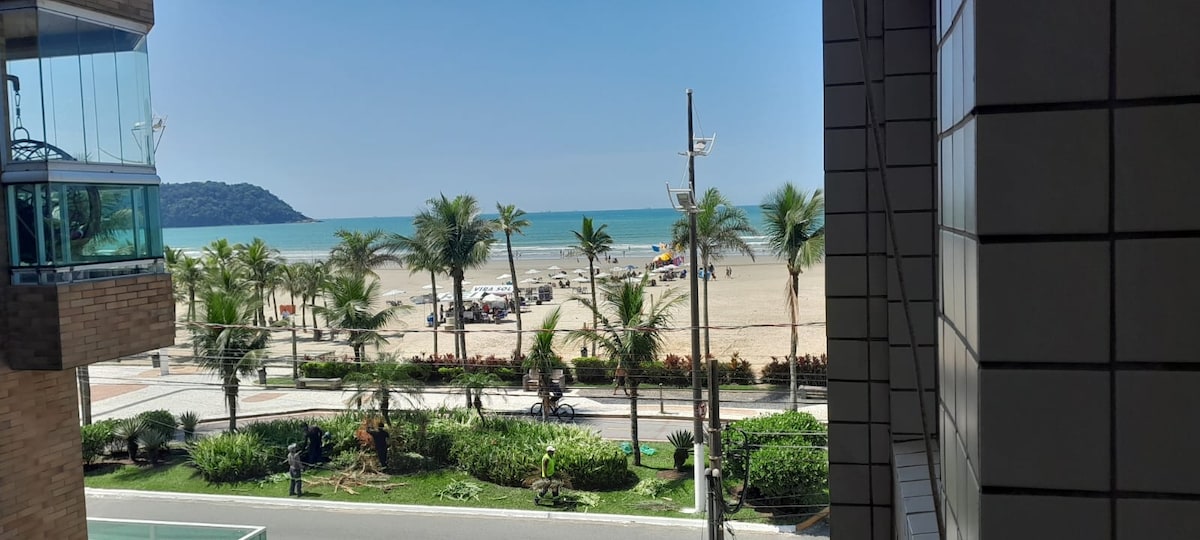 Lindo apartamento localizado na melhor região de São Vicente com vista ao mar e pé na areia. Oferecemos vaga em estacionamento próximo ao local. Próximo a restaurantes, bares, farmácias, supermercados e as principais praias da cidade. O Ape dispõe de ar condicionado, Wi-Fi de 350Mb, TV 55” com canais abertos e Netflix, enxoval completo, cama e sofá cama confortáveis, cozinha completa, além de uma mesa de jantar com vista apaixonante. Diz aí se não é uma delícia para passar um tempinho?