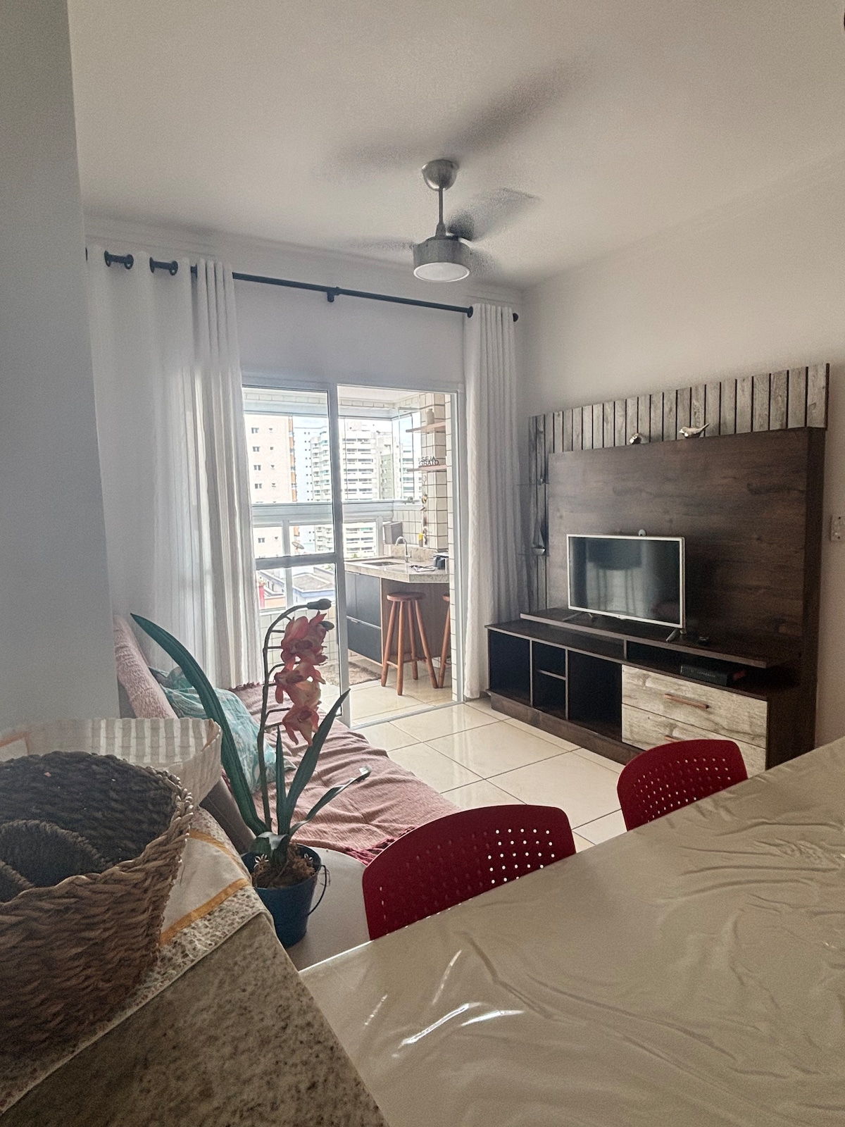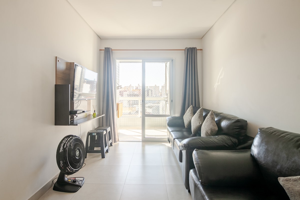 Apartamento super clean e aconchegante com cozinha completa no centro da praia do Boqueirão em Praia Grande, paralelo a rua principal. O bairro é bem tranquilo e conta com mercados como Carrefour e Extra, padarias, restaurantes e diversas lojas. Tudo o que você precisa há poucos metros, inclusive, o terminal rodoviário Tude Bastos, a apenas 2km e Shopping Litorial Plaza a 2,7km. OBS: Estacionamento limitado por ordem de chegada - Wi-Fi coletivo do prédio, Tv Smart,Aplic Tv