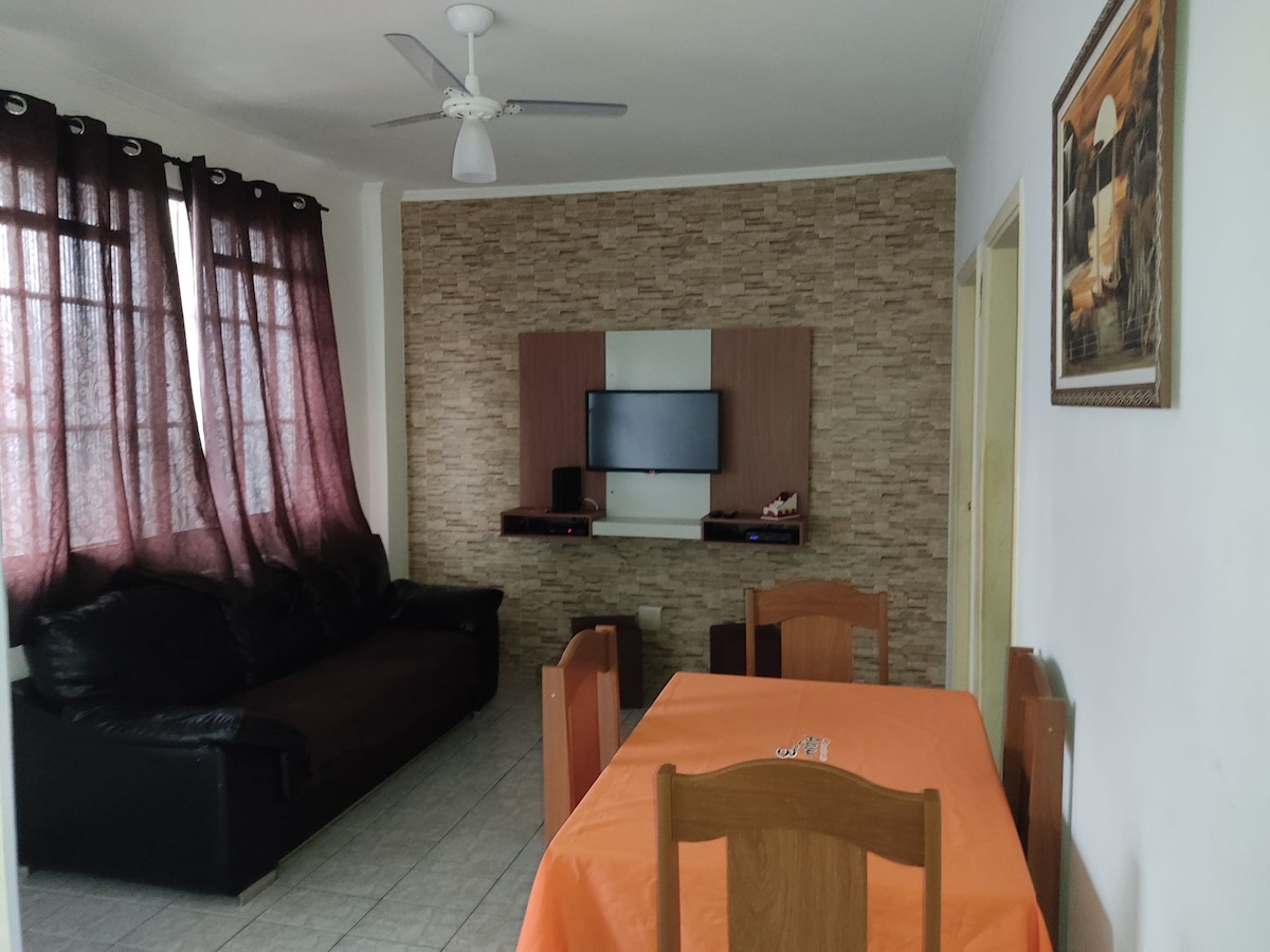 Apto charmoso, localizado a poucos metros da Praia ( 150m), Wi-fi aproveitando os espaços para trabalhar, 2 vagas de garagem, bem decorado de 2 dorm ( uma suíte ) 3 camas Casal e uma de solteiro e dois colchões solteiro, 2 banheiros, sala dois ambientes com mesa redonda de quatro cadeiras, cozinha ampla, lavanderia e uma varanda Gourmet com churrasqueira para um churrasco com a família e mesa com 6 cadeiras fechada com vidros Fica a 150 metros dos Supermercados Carrefour e Extra