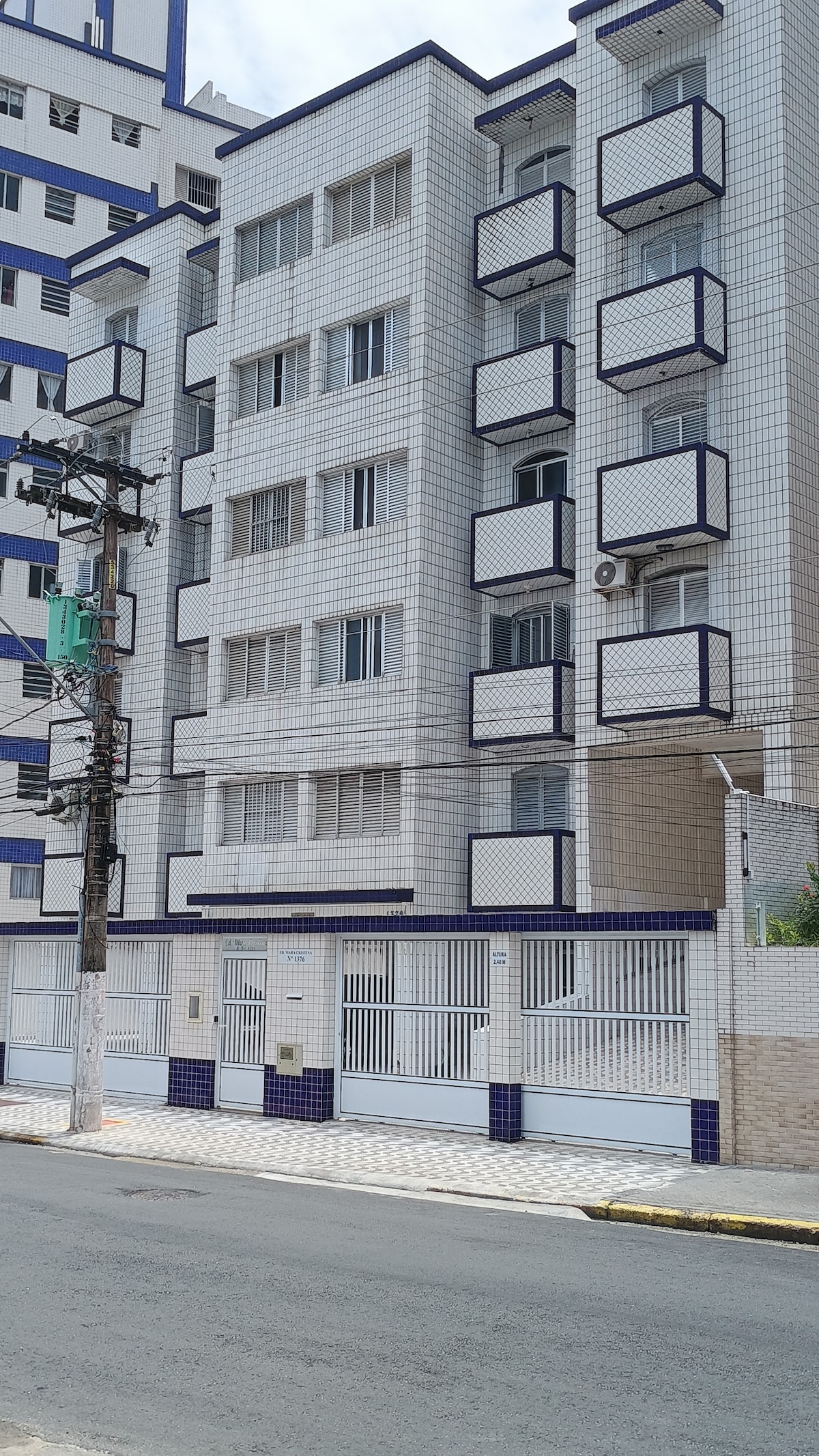 Oitavo andar, 2 elevadores Ventiladores em todos os cômodos,ar condicionado na sala,churrasqueira na varanda.Vista pro mar,1 quadra e meia da praia.... restaurantes.... barzinhos .... mercado, padaria ,farmácia,pet,da pra fazer tudo a pé.....Garagem 1, Móveis e utensílios,tudo que for necessário na cozinha.....,limpeza prioridade.....tudo entregue higienizado....cheiroso.... wi-fi....tv smart. Tv em um dos quartos. Toda energia da casa e 110wats