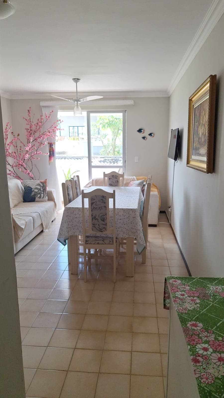 Apartamento com dois quartos, sendo um deles com ar condicionado, sala, cozinha, um banheiro e meio, com sacada com vista para o mar. Muito bem localizado, em frente ao Supermercado Brasão. Além de farmácia, restaurantes, pizzarias, lanchonetes e Café Curaçao, a uma quadra de distância. O condomínio possui churrasqueiras, parquinho infantil, área de descanso e piscinas (mediante taxa de uso de 70,00/pessoa) Apartamento completo e com itens de praia! É só alugar e aproveitar!