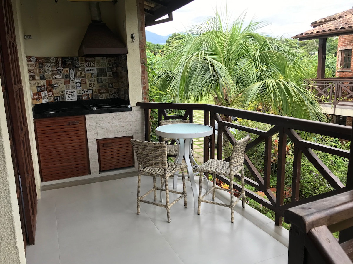 Casa com estilo e conforto , suíte 5 estrelas (chuveiro a gas e banheira grande para dois com hidro, ar condicionado, ventilador teto, colchao queen de qualidade, lençois de algodao 400 fios ,TV, WIFI rapido - dois provedores, varanda com rede, vista para mata atlantica e closet espaçoso. Para seu conforto extra - lareira, cozinha completa e kiosque-churrasqueira , piscina para dois sauna e rio tudo privativo. Jardim cercado para seu pet. Condominio tranquilo, acesso fácil as praias.