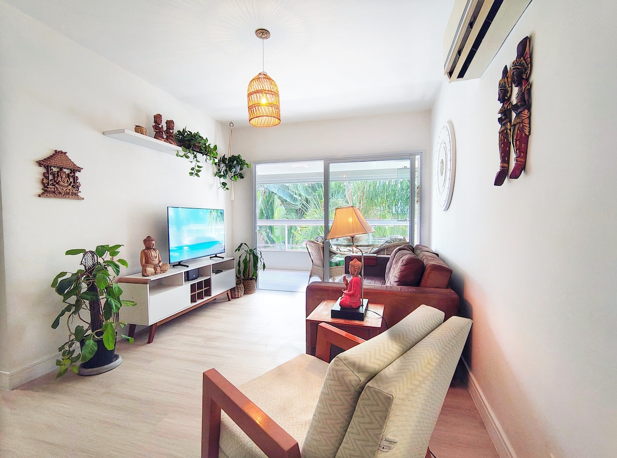 Cozy and comfortable apartment located 5 minutes walking / 200m from Rio Tavares beach. The nature view provides total privacy for a relaxing stay. The building has swimming pool, gym and indoor parking. The space is well equipped, has a good wi-fi, TV, two bathrooms, laundry area and a balcony with barbecue area. Very well located, nearby supermarket, bakery, gas station, restaurants, bars, pharmacy & surf store. 10 minutes by car from Campeche and Lagoa da Conceição and 12km from downtown.