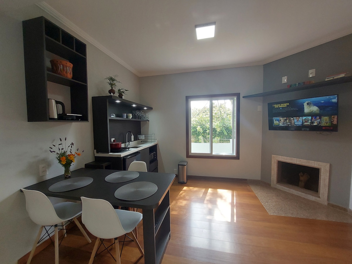 Curta uma experiência elegante neste lugar bem localizado no bairro Campeche, no sul da ilha da magia! O loft/apartamento é na cobertura do prédio e possui uma sacada espaçosa com jacuzzi aquecida e mesas externas, está a 1.5km da entrada da Lomba do sabão da praia do Campeche. A localização é central, com supermercados e comércio próximos, em uma rua tranquila residencial sem saída. O loft é duplex, com a cozinha totalmente equipada, quarto mezanino e sala com sofá-cama de casal.