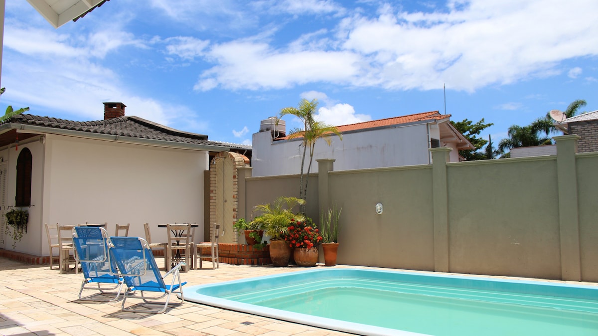 客人喜欢Praia do Campeche度假屋的厨房、无线网络和游泳池