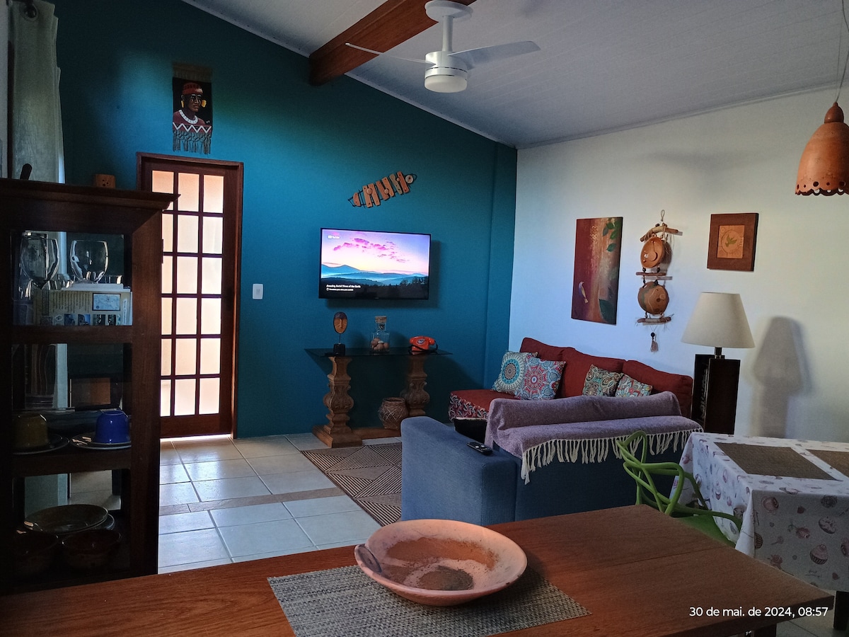 Estúdio aconchegante ótimo pra quem busca tranquilidade e quer passear sozinho ou a dois na Ilha da Magia. No jardim há pássaros cantando, macaquinhos saguis nas árvores e praia há 10 minutos de caminhada ou 2 minutos de carro. A casa fica no sul da ilha no bairro Campeche e é composta de quarto + cozinha e banheiro e jardim na entrada com local para estacionar. Fica próxima de restaurantes, bares, farmácia, padaria e mercados.