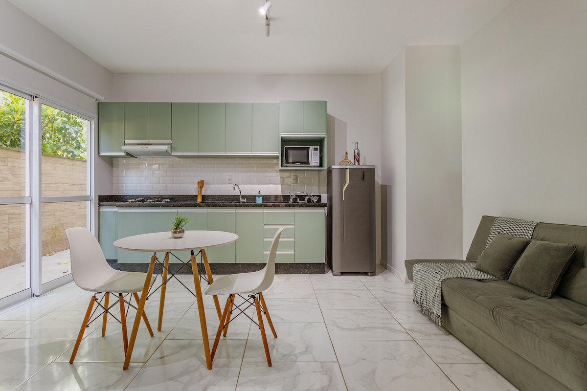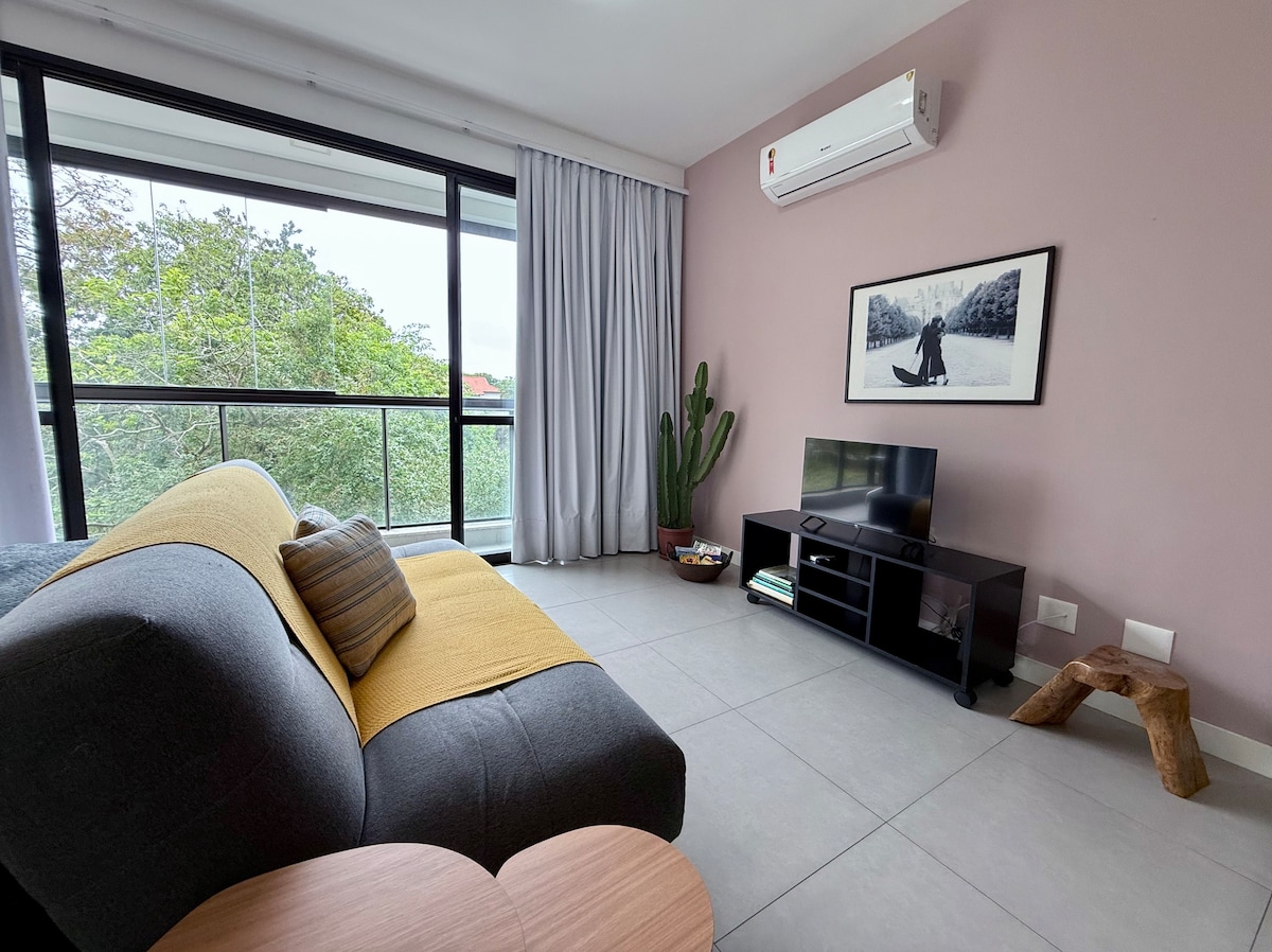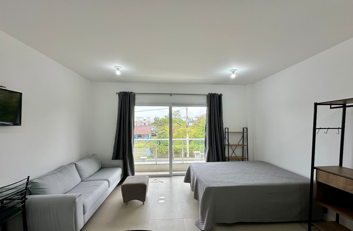 New, clean and comfortable studio, with air conditioning and just 30 meters from the beach. It is located between the beaches of Campeche and Morro das Pedras. The Studio has a 32-inch Smart TV, 200Mb Wi-Fi, a full kitchen - fridge, freezer, stove, gas oven, microwave oven, electric oven and coffee maker. The living room is integrated and the very comfortable sofa bed can accommodate a third guest. The beach is quiet, ideal for surfing, diving, kitesurfing or just relaxing by the shore.