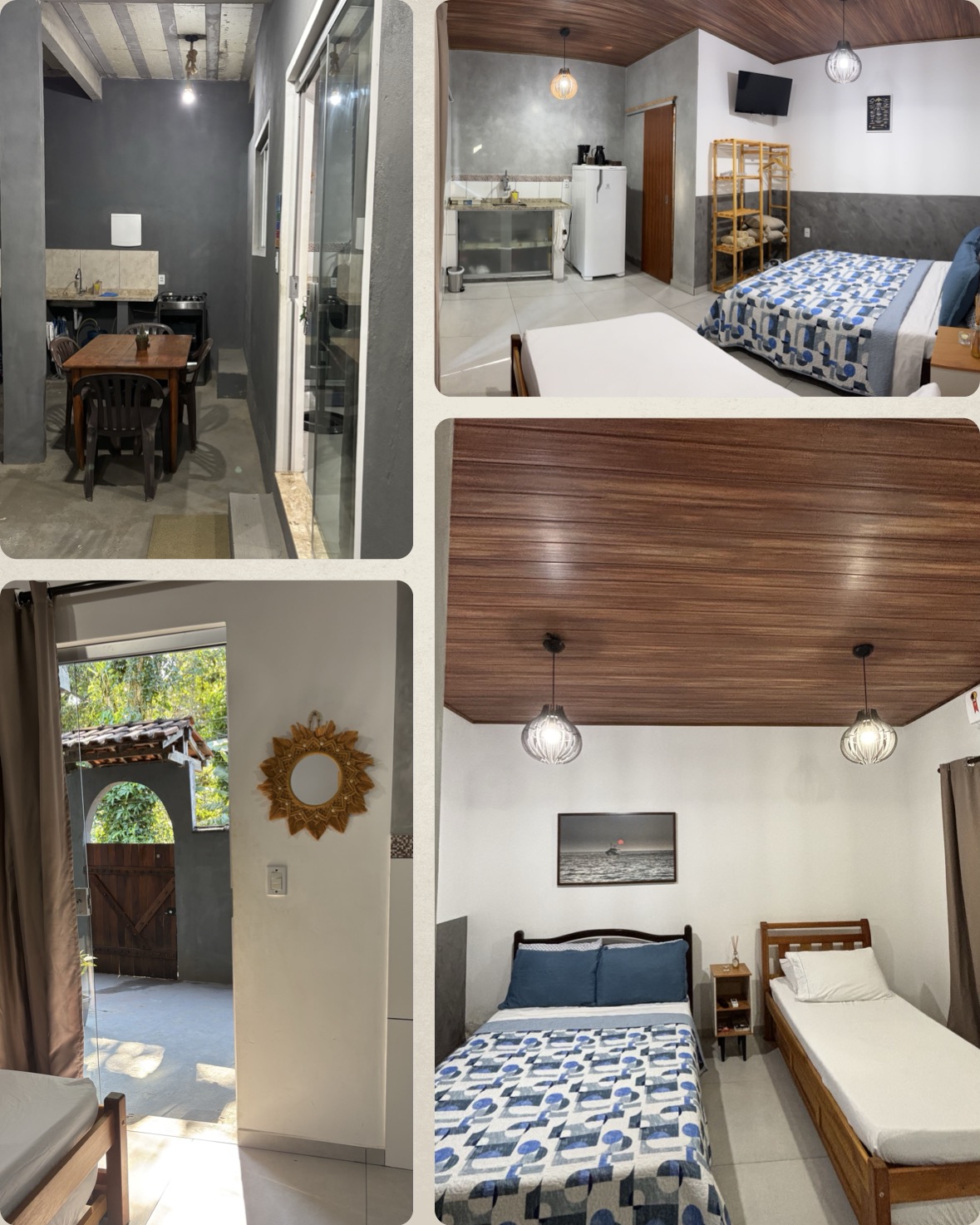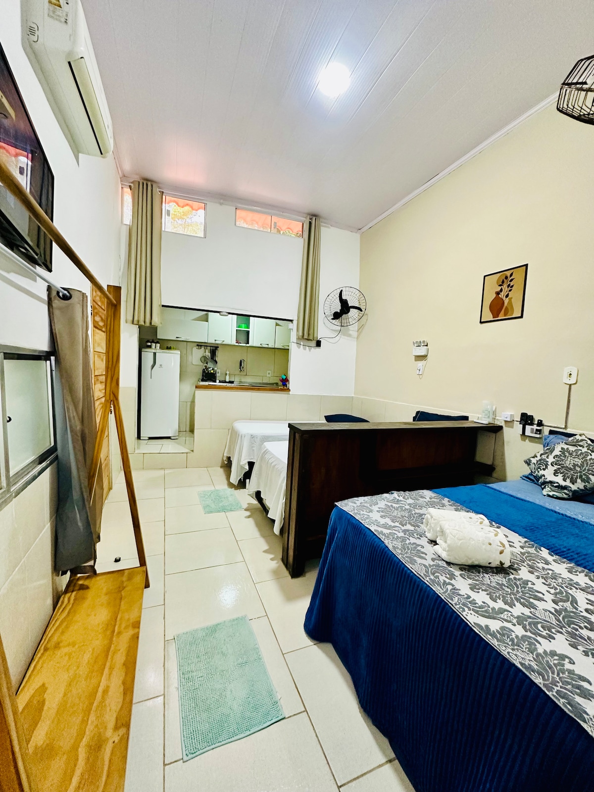 Excelente localização, sem morros. Estamos na rua principal, menos de 10 min do centro e a poucos metros da praia, onde estão os melhores restaurantes e bares. Quarto amplo e perfeito para famílias, possui uma cama de casal e 2 camas de solteiro no mezanino. Oferecemos 2 ar condicionados, wifi, frigobar, microondas, sanduicheira, cafeteira, utensílios básicos, pia, roupa de cama e banho, banheiro privativo, varal e área externa. Ambiente tranquilo, confortável. Garantimos fidelidade às fotos.