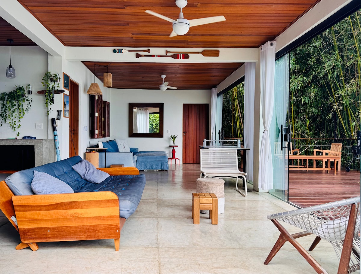 Imagine-se em um lugar onde tudo foi preparado com capricho, para que você tenha uma experiência única: os ares de uma chácara mesclados às belezas do mar e em uma localização de fácil acesso, próxima à rodovia. Esta é a Casa das Mangueiras! Situada entre um bosque de mangueiras e a praia, a casa proporciona um ambiente tranquilo, reservado e com uma piscina aquecida exclusiva para você. Namaste. Aceitamos 1 pet por estadia até 20 kg.