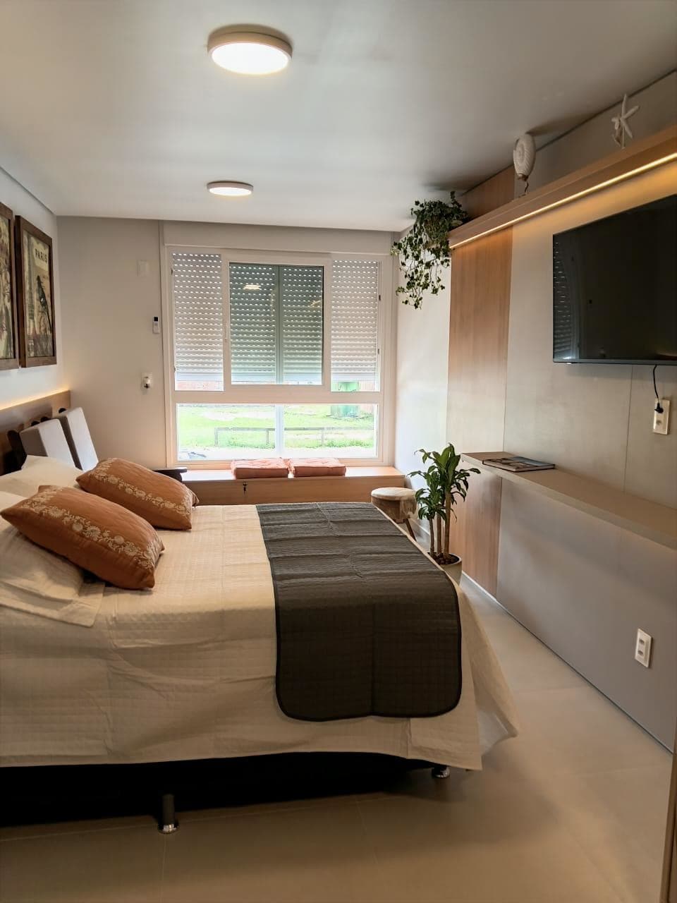 Hospede-se em um apartamento pensado com carinho para oferecer conforto e estilo. Com ar-condicionado nos quartos, cozinha completa e uma TV de 60”, sua estadia será ainda mais agradável. • Quarto 1 (suíte): Possui uma cama queen size, closet amplo e um banheiro completo com chuveiro a gás para seu conforto. • Quarto 2: Espaçoso, com uma cama de casal e espaço dedicado para home office, ideal para quem precisa trabalhar ou estudar durante a estadia. E para seu carro: garagem interna coberta!