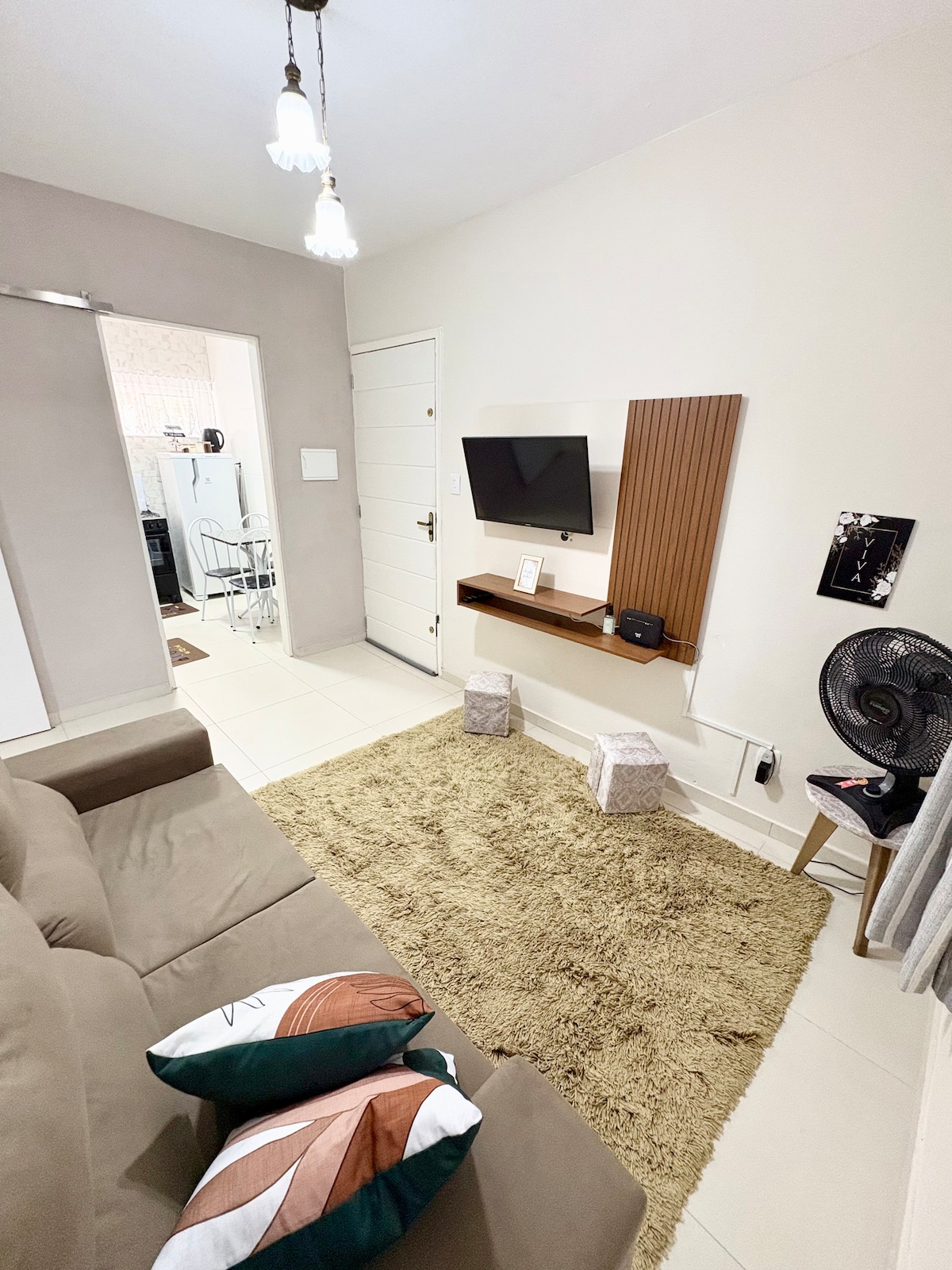 Relaxe com toda a família nesta acomodação tranquila. 2 dormitórios . Ar condicionado sala. ventiladores de teto quarto. Duas ou Três Smart TV. Internet. box coberto para 1 carro. opçao salão de Festas sob agendamento e custas. cozinha completa com churrasqueira Microondas. torradeira. jarra elétrica. churrasqueira interna. condomínio fechado com área verde com bancos e mesas área frontal condomínio. móveis pouco uso. duas cama casal com colchões novos .sofá retrátil vista privelegiada