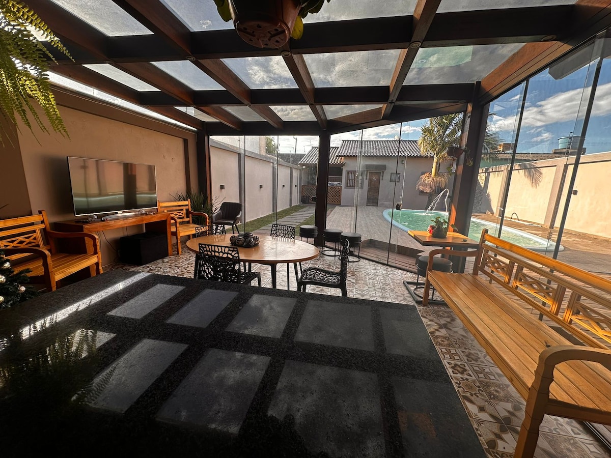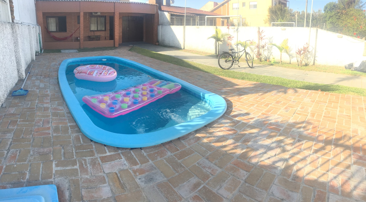 Casa aconchegante com linda área externa com piscina e todas as comodidades para uma estadia confortável e inesquecível, localizada há duas quadras da Avenida Rio Grande. Divirta-se com toda a família neste lugar cheio de estilo.
