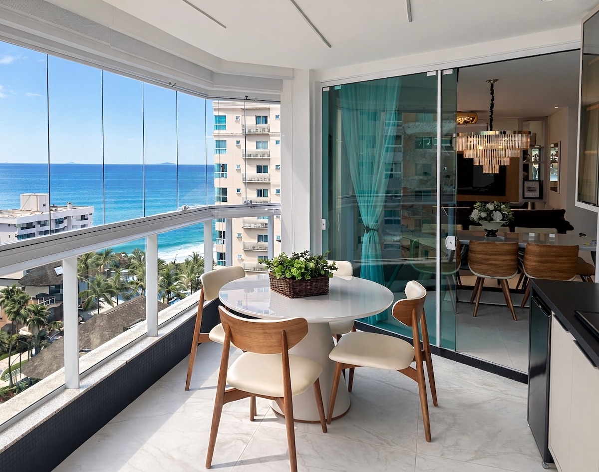Com vista panorâmica para mar da ampla janela da sala e da cozinha, e tb tem vista das suítes, realmente privilegiada a localização, a poucos passos da praia! 2 suítes confortáveis e climatizadas, amplo lavabo, salas e cozinha integradas, TV na sala c 65 polegadas. Curta dias incríveis com toda comodidade, tranquilidade e sossego num prédio c apenas 7 aptos e sem obra do lado🙌!! Próximo de padaria, restaurantes e barzinhos beira-mar. Venha descansar e aproveitar esse espaço único e especial
