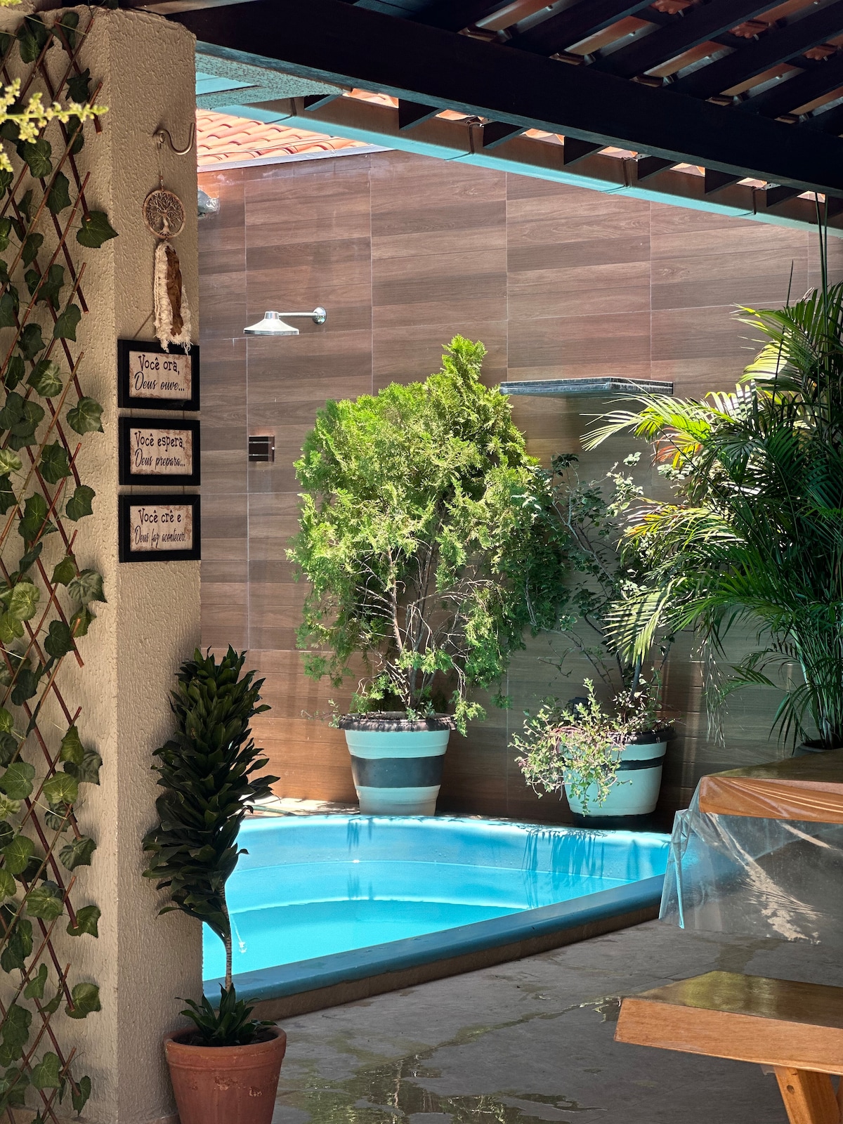 ☀️ Seu Refúgio Perfeito com Piscina Privativa, Churrasqueira Gourmet e Conforto Total! O imóvel foi pensado para oferecer o máximo de conforto. Relaxe na Piscina e aproveite a Churrasqueira com Cooktop auxilia, chuveiro e banheiro externo. Dois quartos com Ar-Condicionado e Ventilador, cada um com duas camas. Sua segurança é garantida: o imóvel tem Cerca Elétrica, Concertina, Portão Eletrônico e grades nas portas. Garagem para 3 carros pequenos. Reserve agora e garanta uma estadia inesquecível.
