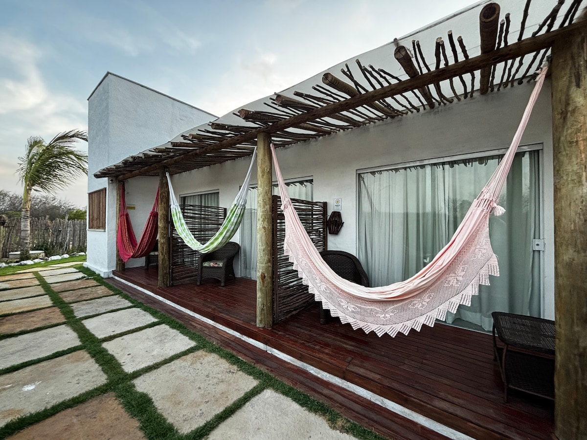 Este é um refúgio que mistura o rústico com o moderno, bem localizado no coração do vilarejo, com restaurantes e armazéns próximos. Fica a apenas 800 metros da praia — cerca de 2 minutos de carro ou de 6 a 8 minutos de caminhada. Está também a poucos minutos de lindas atrações naturais como o Mangue Seco, o rio Camorupim, lagoas de águas mornas e o deslumbrante mar do nosso litoral. Ideal para quem busca conforto, boa localização e uma conexão genuína com a natureza.
