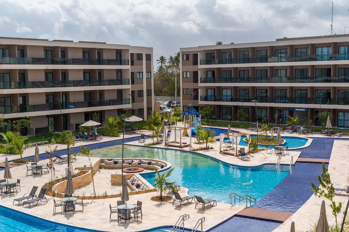 Viva momentos inesquecíveis em nosso flat moderno, com cama queen, sofá-cama, cozinha completa e varanda com vista para a piscina. Descanse e aproveite uma estrutura com padrão de resort, que inclui piscinas, academia, restaurante, salão de jogos, brinquedoteca, parque infantil, coworking e recarga para carros elétricos. Conforto e praticidade para sua melhor experiência!