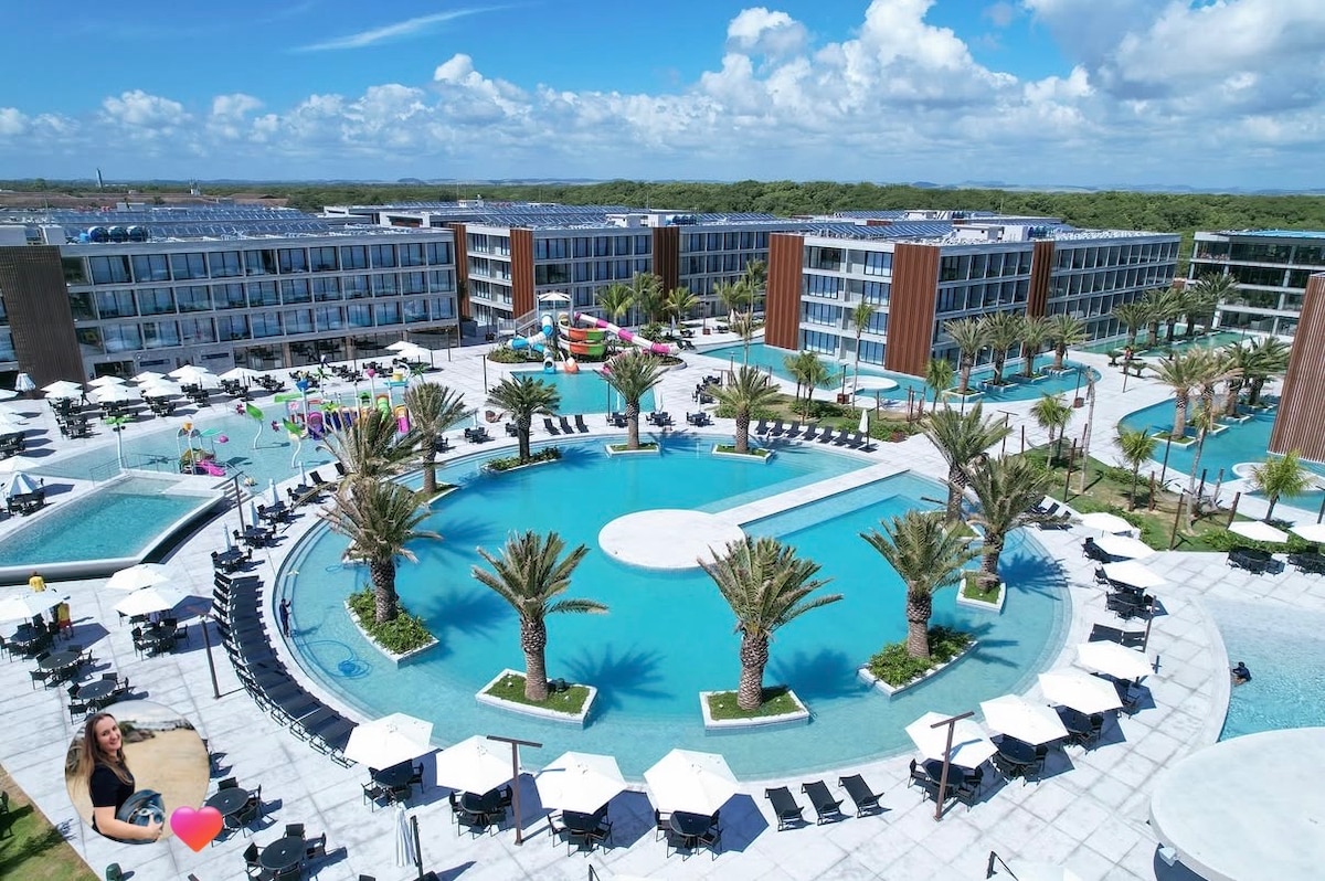 O mais novo, e um dos melhores resorts de Pernambuco ao seu alcance. Apartamento de 1 quarto, sala com cozinha e varanda, totalmente equipado. O resort é um verdadeiro playground, voltado para família, conta com Kids Water Park, duas brinquedotecas completas e piscinas com prainhas infantis para as crianças. Inclui ainda um boliche com seis pistas, duas salas de cinema e um complexo de jogos eletrônicos. Academia de ponta, quadras esportivas, minigolfe e um SPA relaxante com bangalôs.