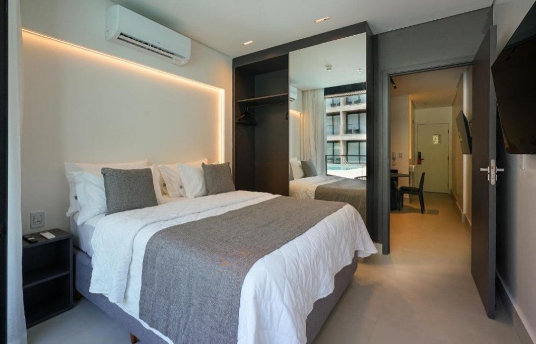 Relaxe com estilo ao ficar neste lugar luxuoso. Novo Resort em Muro Alto, o Porto Alto Resort GAV. O PORTO ALTO RESORT tem espaços planejados na medida certa para sua realização. O conceito SMART com 1 quarto, agrega otimização, charme e o melhor pra você usufruir umas das melhores praias do Brasil. Café da manhã é refeições pagos separadamente direto para o restaurante só resort. NÃO ESTÁ INCLUSO REFEIÇÕES.