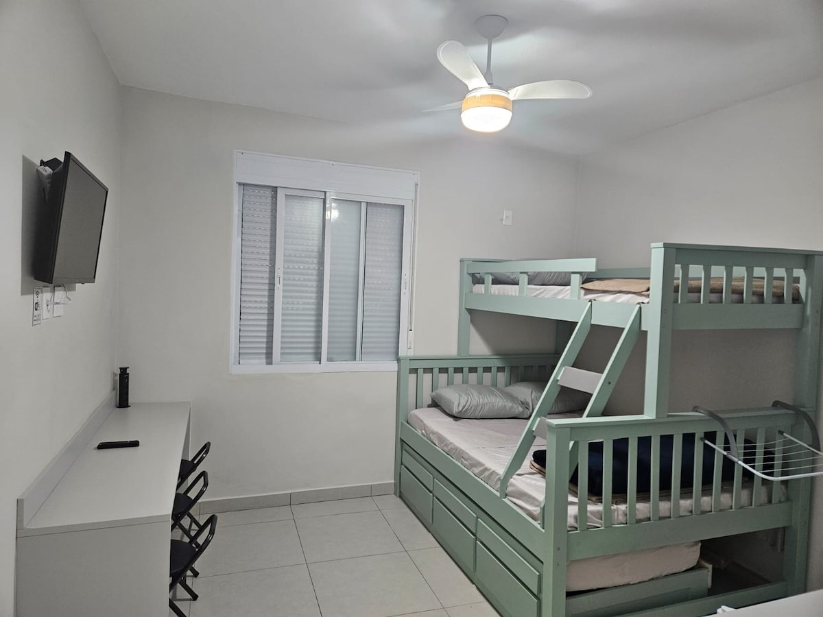 This 55m² apartment is ideal for couples and executives on business trips. It has everything you'd expect from an apartment: practicality and technology. For those coming to spend New Year's Eve in Santos, you can enjoy the festivities without even leaving the building. From the pool area, you can enjoy the sea view, the fireworks, and the city's festive atmosphere without having to deal with traffic, crowds, or a tiring commute after the fireworks.