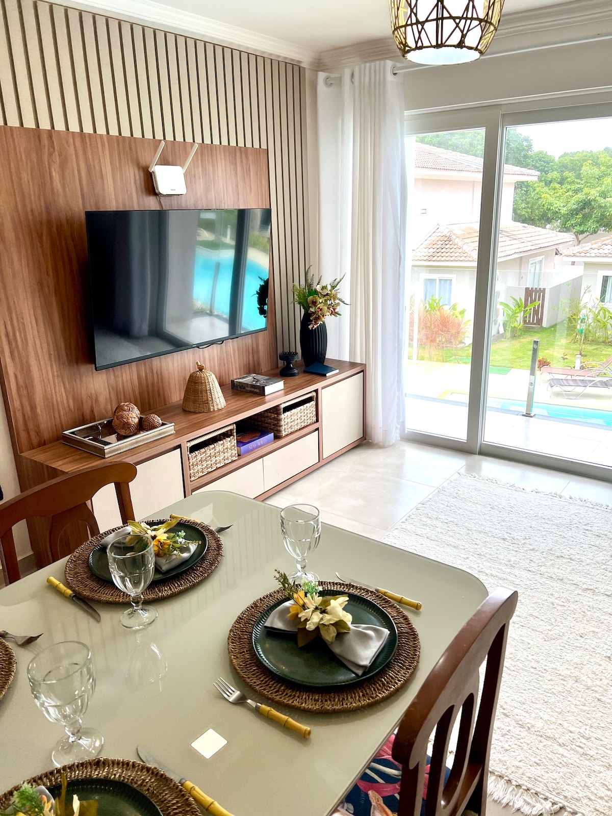 A Vila Acayu é uma casa de temporada imersa na natureza. Inspirada na rusticidade e beleza de Trancoso e Grécia. Com uma piscina paradisíaca azul, cercada por cajueiros e plantas. Decoração rústica e aconchegante, conta com vários cantinhos pra relaxar. Possui uma ampla área gourmet com churrasqueira, cooktop, varanda e sala com TV Smart (sem canais fechados). Todas as suítes tem ar-condicionado, dossel e frigo. Localizada em condomínio fechado na Estrada dos Macacos, 1,5km do famoso Quadrado.