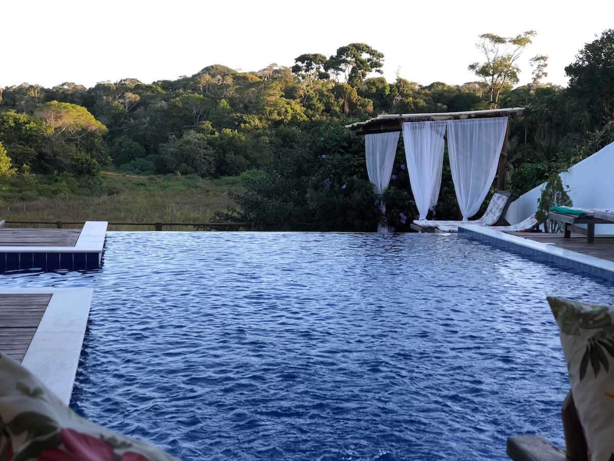 A nossa casinha foi pensada com muito carinho para trazer o máximo de conforto aos nossos hóspedes, desde uma jacuzzi incrível super privativa no deck da sua suite, enxoval inteiro de 400 fios a uma internet excelente de 200 Mb em fibra ótica para quem está de homeoffice. Nossa Vila tem 2.200 m² com lindas árvores que proporcionam um espetáculo a parte. Temos visitas diárias de 3 espécies de macacos, diversos pássaros e até bichos preguiça. :) Estamos a 2km do Quadrado e 3 km da praia + próxima