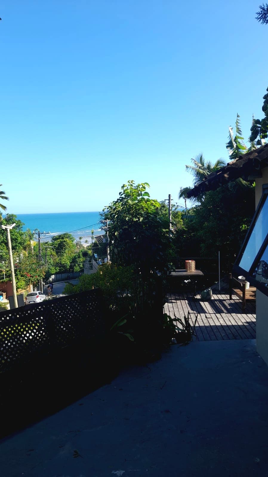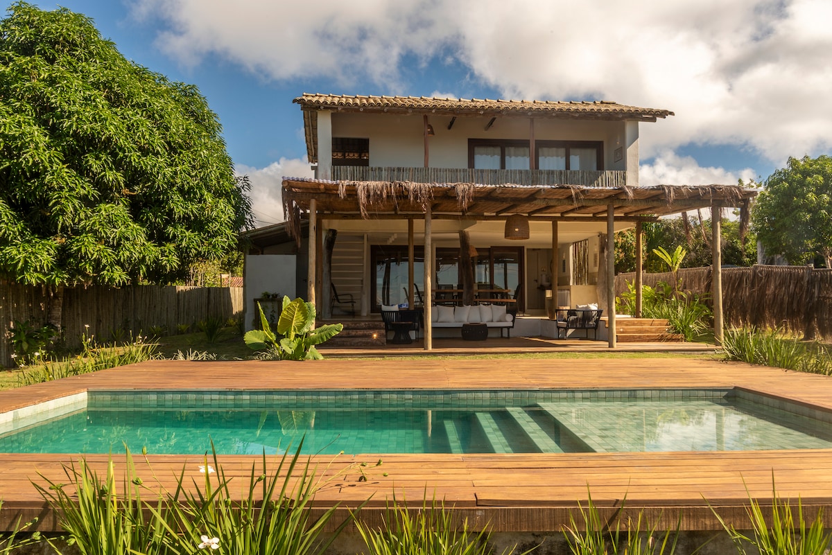 Viva a experiência de uma casa baiana, situada no melhor ponto da Vila do Outeiro, em frente da área de reserva da falésia da trilha que desce para praia com vistas espetaculares do mar. O luxo está na simplicidade, nos detalhes da arquitetura do sul da Bahia, onde os mestres fazem uso intenso da madeira nas janelas, colunas e sustentação do telhado no piso do terraço. Uma casa com o aconchego da decoração criada por sua dona, para receber sua família, amigos e agora nossos hóspedes.