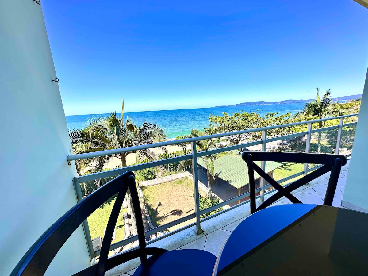 Leia nossas + de 100 avaliações, todas 5 estrelas! Apto completo para até 6 hóspedes: - 1 suíte+2 quartos (todos c/ ar condicionado e TV, os dois maiores com vista para o mar) - Sala de estar e jantar c/ vista direta para a barra norte - Cozinha e lavanderia totalmente equipadas - Garagem privativa para um veículo médio (*) - Edifício frente ao mar na av. Atlântica com vista total da orla na área comum e portaria 24h - Roupas de cama e banho limpos em lavanderia - Pet friendly