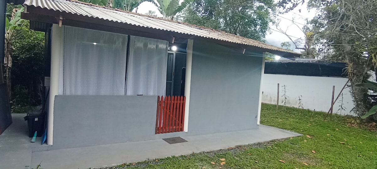 Linda casa a 900m da praia do Prumirim e a 250m da cachoeira do Prumirim. Cercada pela Mata Atlântica, proporciona a observação de lindas aves nativas da região, além de poder escutar o som das águas da cachoeira que passa próximo propriedade. No mirante é possível apreciar a espetacular vista para ilha do Prumirim. No quarto temos 1 beliche e uma cama Queen. TV smart.