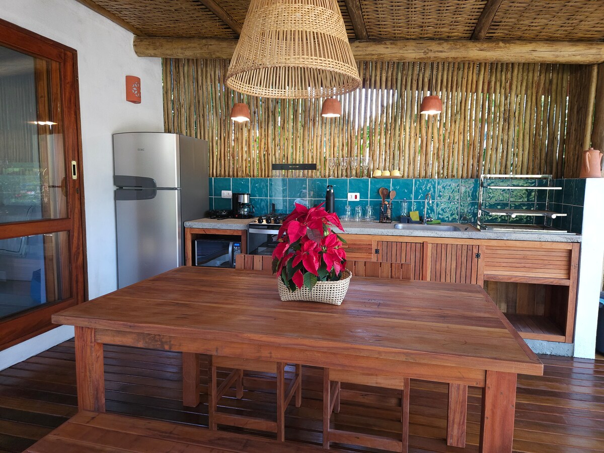 Incrivelmente charmosa, nossa Casinha está localizada dentro da Mata Atlântica. Dela podemos observar pássaros de todas as especies, os tucanos e esquilos são um show a parte. A casa fica no alto da floresta de Itamambuca e está sempre fresquinha . Temos ar condicionado. A água vem direto de dentro da floresta e é muito boa para beber e tomar banho. A Casinha é toda cercada e seu pet pode ficar solto em segurança. Organizamos trilhas, aulas de surf e sessions nas melhores condições.