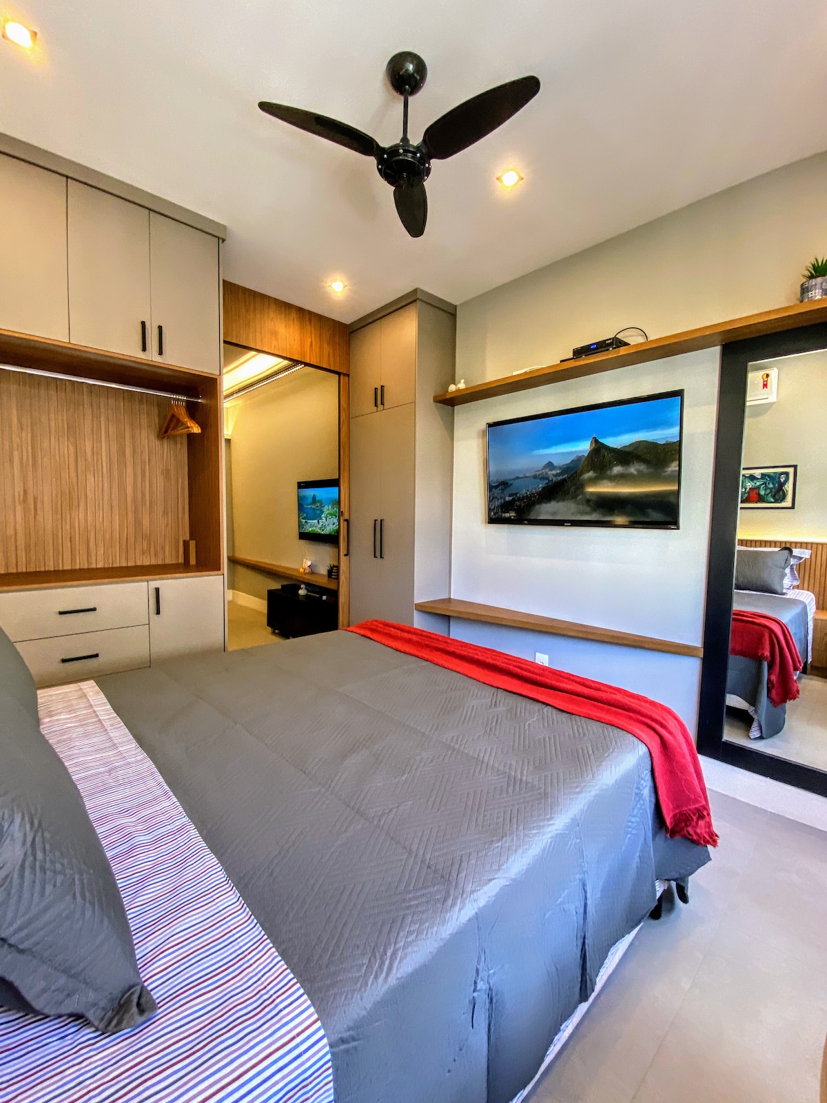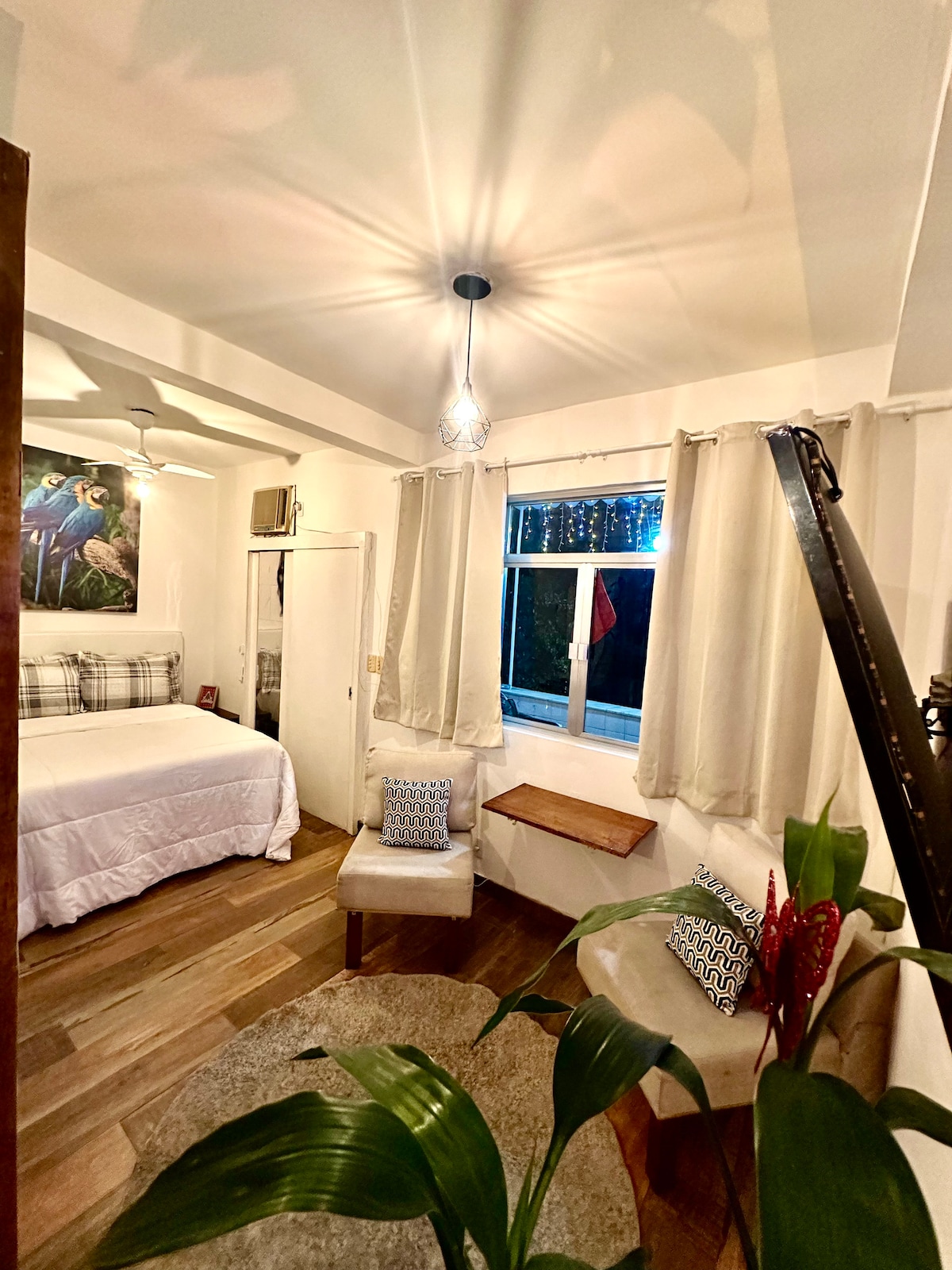 Nosso espaço foi renovado em 2022. Com uma proposta de design sofisticada e moderna ele foi projetado para o uso exclusivo de AIRBNB. Para garantir sua noite de sono, pensamos em todos detalhes: cortinas blackout, cama queen e ar condicionado split O espaço também possui uma cozinha totalmente equipada, área trabalho , um banheiro amplo e confortável Estrategicamente localizado no coração Flamengo, o bairro oferece fácil acesso e deslocamento para os principais pontos turísticos.