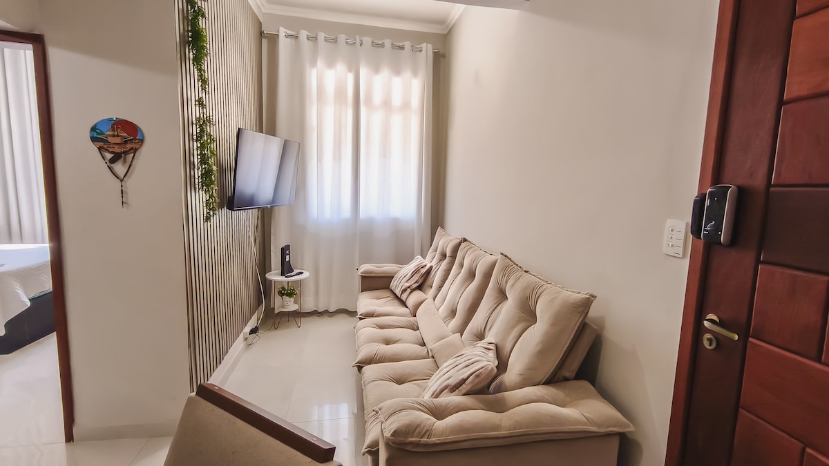 Apartamento na praia do forte, aconchegante e charmoso. Alugue um apartamento na rua mais concorrida de Cabo Frio. Só não tem vista para o mar , a janela vista nas fotos é da rua tamoios.. mas não te tira o conforto de estar pertinho do mar …Com mercados e lojas ao entorno , sem precisar de carro para nada! Próximo ao hotel Malibu, com entrada em frete à praia ou pela rua de trás. Roupas de cama e toalhas de banho disponíveis para os hóspedes. Vaga de garagem para um carro.