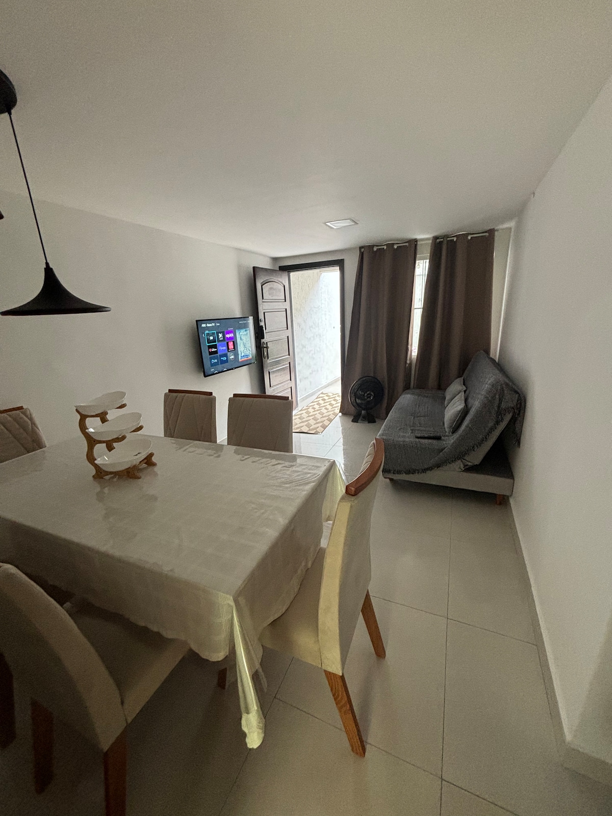 O apartamento é amplo, arejado e bem iluminado, com decoração charmosa e todos os itens necessários para uma estadia confortável. Dispõe de 2 quartos, sendo uma suíte com ar-condicionado e TV, além de um banheiro social. A sala é espaçosa e acolhedora, perfeita para relaxar, e a cozinha é bem decorada e totalmente equipada. A varanda oferece um ambiente agradável para desfrutar a brisa de Cabo Frio. 🌊 Localização privilegiada, próxima à Praia do Forte —