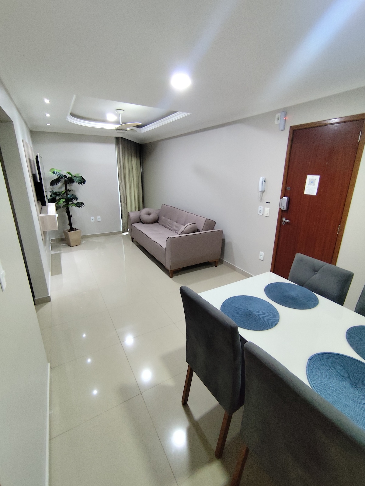 Belo,Novíssimo e Amplo apartamento Avarandado, com 2 quartos :1 Suíte c/TV cama de casal, cama de solteiro e 1 colchão solteiro, 1 Quarto cama Queen ambos com ar condicionado. Banheiros com água quente, secador de cabelo.Sala 2 ambientes, mesa de jantar p/8 pessoas, TV 55"a Cabo, SKY, NETFLIX, INTERNET ALTA VELOCIDADE, sofá Cama de Casal, AMPLA COZINHA completa, Coller. Área de Serviço c/Filtro c/ água gelada e ambiente, Máq. Lavar, FERRO. 2 vagas garagem. Roupa de cama,mesa e banho. Elevador.