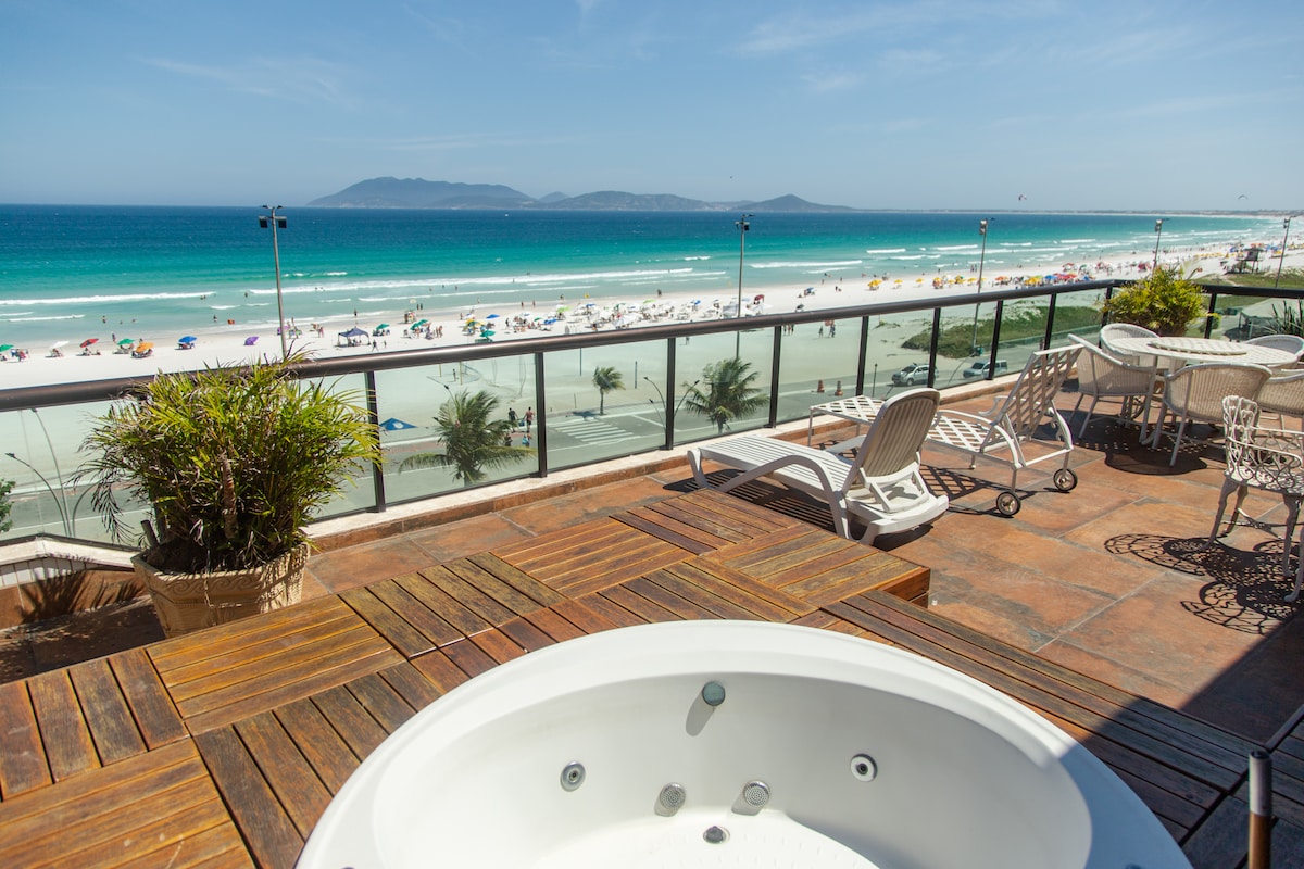 Apartamento totalmente renovado e equipado com mobília da melhor qualidade de frente para o mar e com vista completa para a Praia do Forte. A acomodação dispõe de 3 quartos - sendo um deles suíte e com vista para o mar- cozinha americana, lavanderia e uma charmosa sacada. A melhor localização em Cabo Frio, com todo o conforto para você e sua família ou grupo - bem em frente à praia, basta somente atravessar a rua para chegar na areia, o prédio conta também com estacionamento, piscina e sauna.