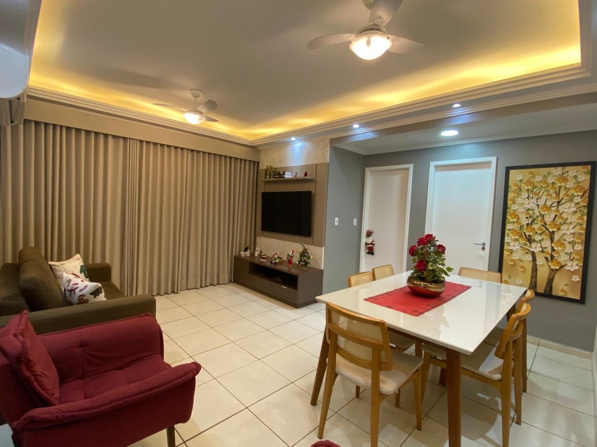 Located in an upscale neighborhood, with views of Praia do Forte and close to all the shops of Cabo Frio, the apartment is modern and stylish. It has been carefully designed to provide maximum comfort for guests: • Comfortably accommodates up to 6 adults • Living room with a 50-inch Smart TV, Wi-Fi, and a retractable sofa • Balcony with views of Praia do Forte • Morning sun • Fully equipped kitchen • 2 bedrooms • Bed and bath linens provided • Washing machine • Parking space • Dining table