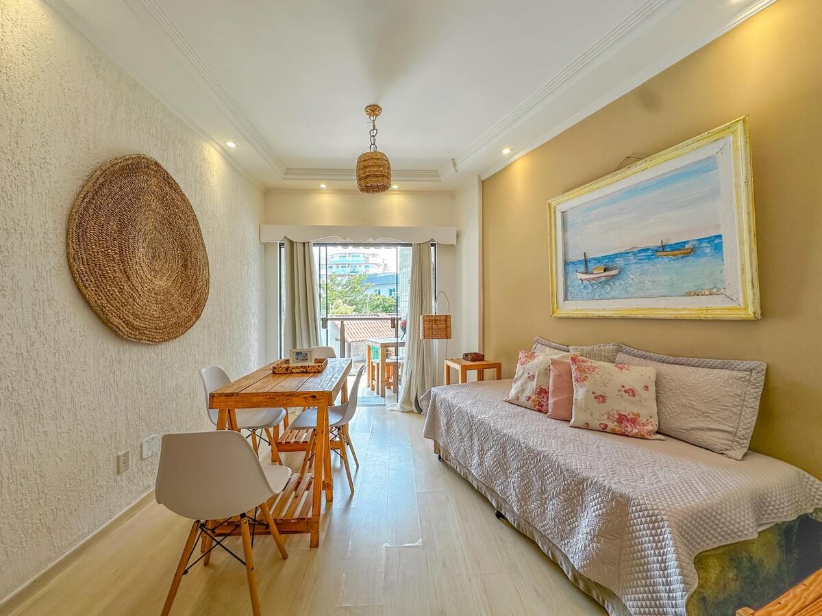 Este encantador apartamento ocupa uma localização estratégica, a meros 500 mts da Praia do Forte e 200 mts do Canal.Cuidadosamente preparado para proporcionar momentos únicos. A jacuzzi na varanda adiciona um toque especial à acomodação. A conexão Wi-Fi atende às necessidades de trabalho remoto. Ar condicionado split em ambos os quartos,cozinha completa e vaga de garagem. Sua estadia neste belo espaço é mais do que uma experiência, é a garantia de momentos memoráveis.