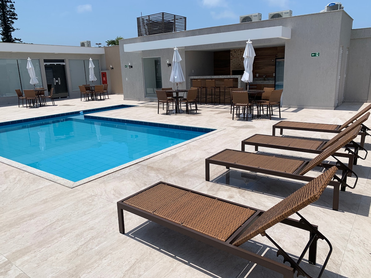 Apto centro ao lado do comércio/piscina/suite ar