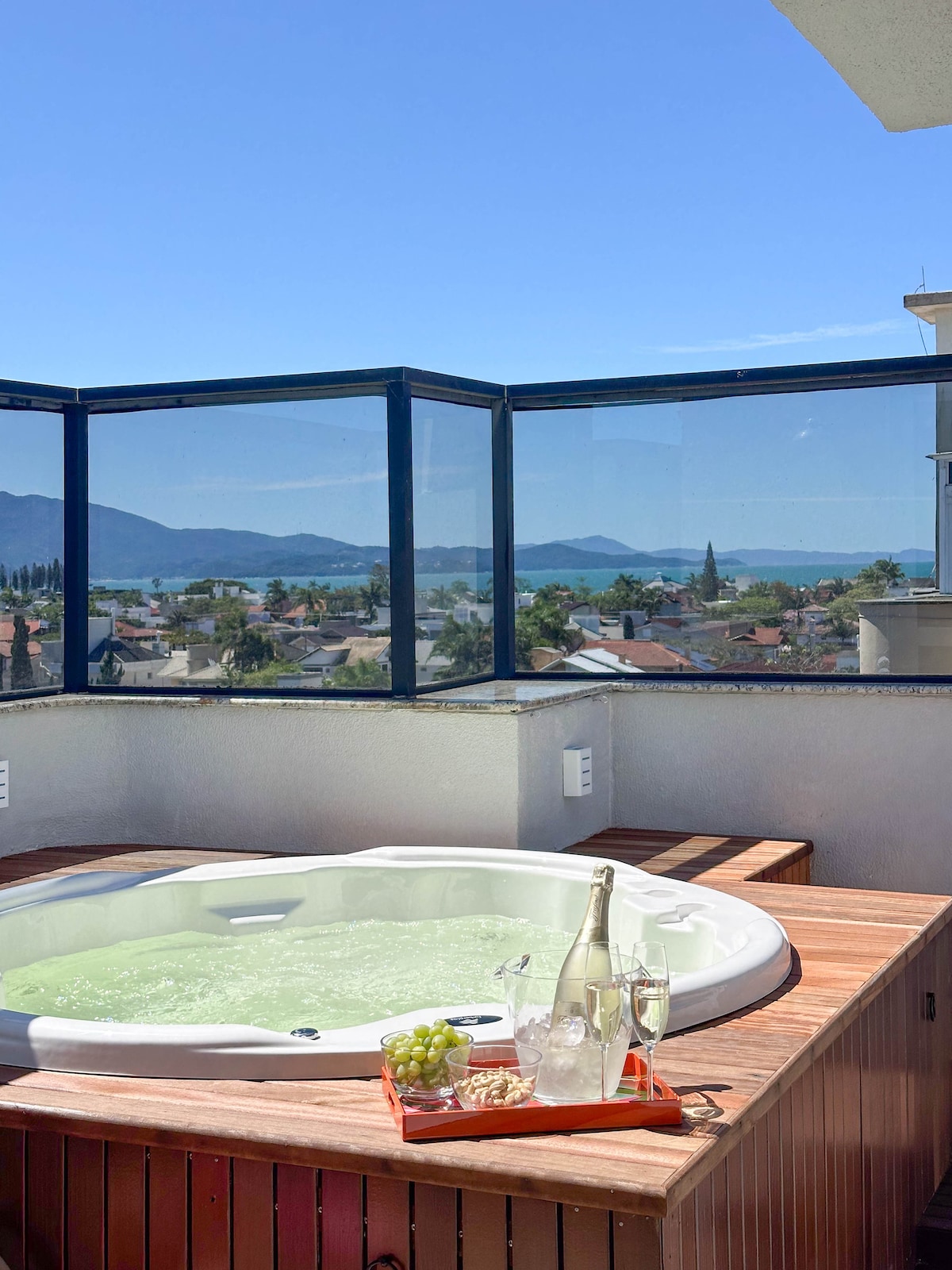 Bela Cobertura c/ jacuzzi e vista para o mar, localizado no Open Shopping de Jurerê Internacional, cercado por cafés,restaurantes, lojas e toda a atmosfera vibrante da região.Recém-reformado, conta com 3 quartos, sendo 1 suíte, e acomoda até 6 pessoas com conforto. Área gourmet climatizada integra-se ao deck com jacuzzi, criando um ambiente perfeito para relaxar. A apenas 650m da praia e ao lado do Supermercado Angeloni, o imóvel une praticidade, charme e a experiência única de viver Jurerê a pé