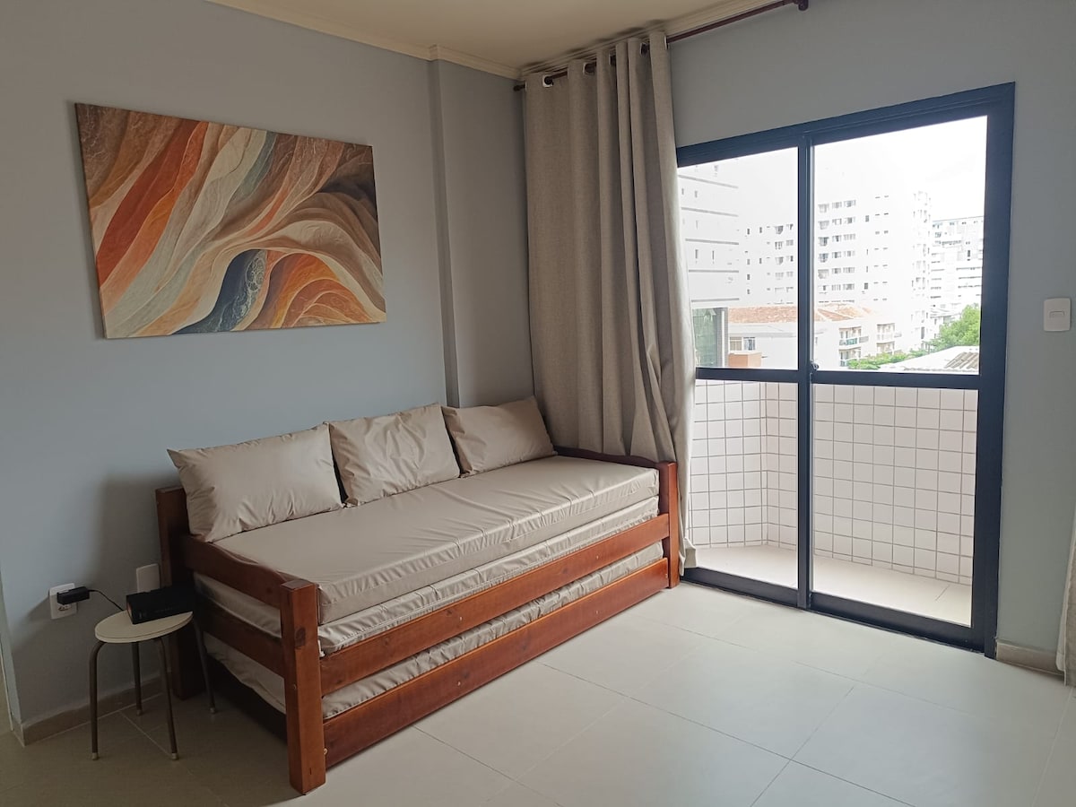 ⚠️ATENÇÃO AR CONDICINADO DO QUARTO INOPERANTE TEMPORARIAMENTE 📍 Boqueirão – Praia Grande/SP ⏰ Check-in: 14h às 23h | Check-out: até 12h 🌅 Domingo estendido: saída até 16h ✨ Pé na areia, varanda com vista incrível da orla e localização imbatível: guarde o carro e faça tudo a pé! Destaques 🛏 Roupa de cama/banho inclusas 🛏 1 dormitório – até 6 hóspedes ❄️ Ar-condicionado na sala e quarto 🌐 Wi-Fi 🍳 Cozinha equipada 🐶 Pet friendly: taxa R$150/pet por hospedagem
