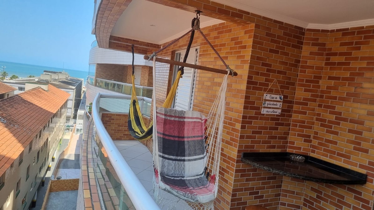 Oitavo andar, 2 elevadores Ventiladores em todos os cômodos,ar condicionado na sala,churrasqueira na varanda.Vista pro mar,1 quadra e meia da praia.... restaurantes.... barzinhos .... mercado, padaria ,farmácia,pet,da pra fazer tudo a pé.....Garagem 1, Móveis e utensílios,tudo que for necessário na cozinha.....,limpeza prioridade.....tudo entregue higienizado....cheiroso.... wi-fi....tv smart. Tv em um dos quartos. Toda energia da casa e 110wats