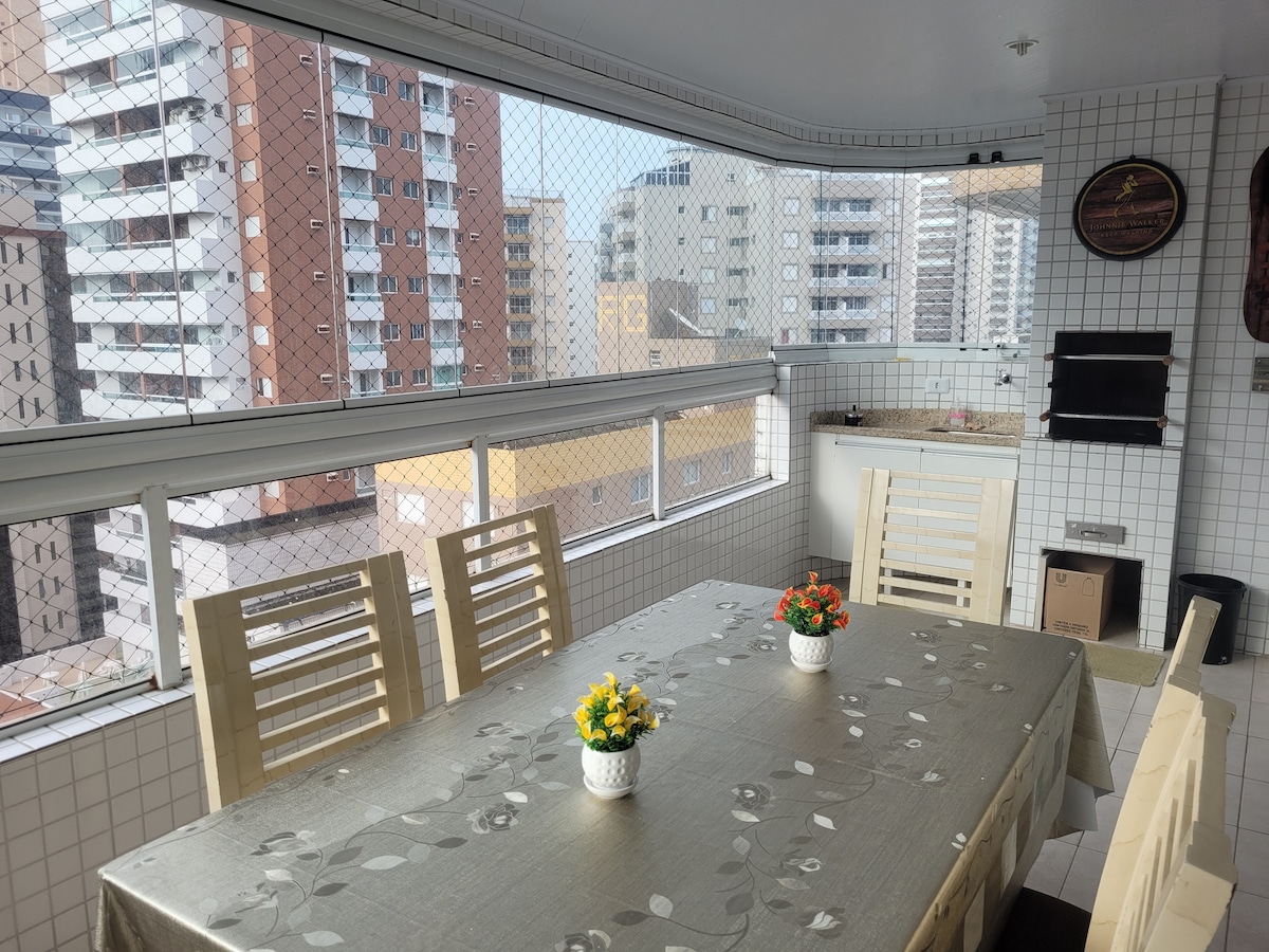 Modern apartment on Aparecida beach. Excellent location, building in front of the beach, close to the bars of channel 5 and the Praiamar shopping mall. On a high floor, with partial sea view, on 3 balconies. Well equipped kitchen (gas grill, microwave, electric oven, cooktop, brewery, wine cellar, coffee makers and dishwasher). Social bathroom. Suite with queen bed, whirlpool and bathroom. Bedroom with 2 king single beds. Mattress/sofa available. Laundry with machine. Air-conditioned.