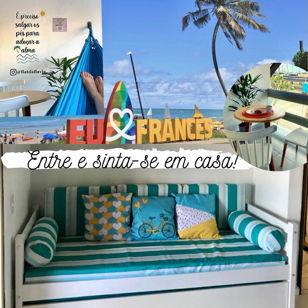 O meu Flat é super confortável e bem localizado! Fica na melhor parte da praia do Francês e foi totalmente reformado e mobiliado para melhor recebê-los. O apartamento é composto de 01 quarto, sala, cozinha e banheiro. É no 1º andar e possui uma varanda com privacidade, muita ventilação e vista para o mar. É próximo a praticamente todos os estabelecimentos comerciais (bares, restaurantes e supermercados). Capacidade: 5 pessoas Wi-fi disponível Obs: Administro outro flat nesse mesmo condomínio.
