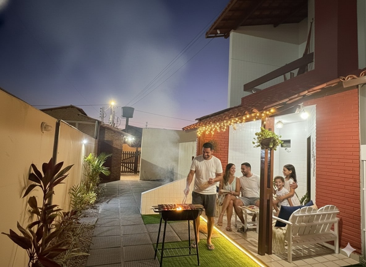 Casa de Praia na Barra de São Miguel com ampla área de lazer. Casa espaçosa e confortável, perfeita para famílias e grupos que desejam aproveitar o litoral alagoano. Localizada na Barra de São Miguel, a poucos minutos das praias mais bonitas da região. Ampla área de lazer com piscina, churrasqueira e espaço gourmet, varanda arejada com vista agradável, quartos confortáveis e bem iluminados. Sala integrada ao jardim, ambiente leve e descontraído
