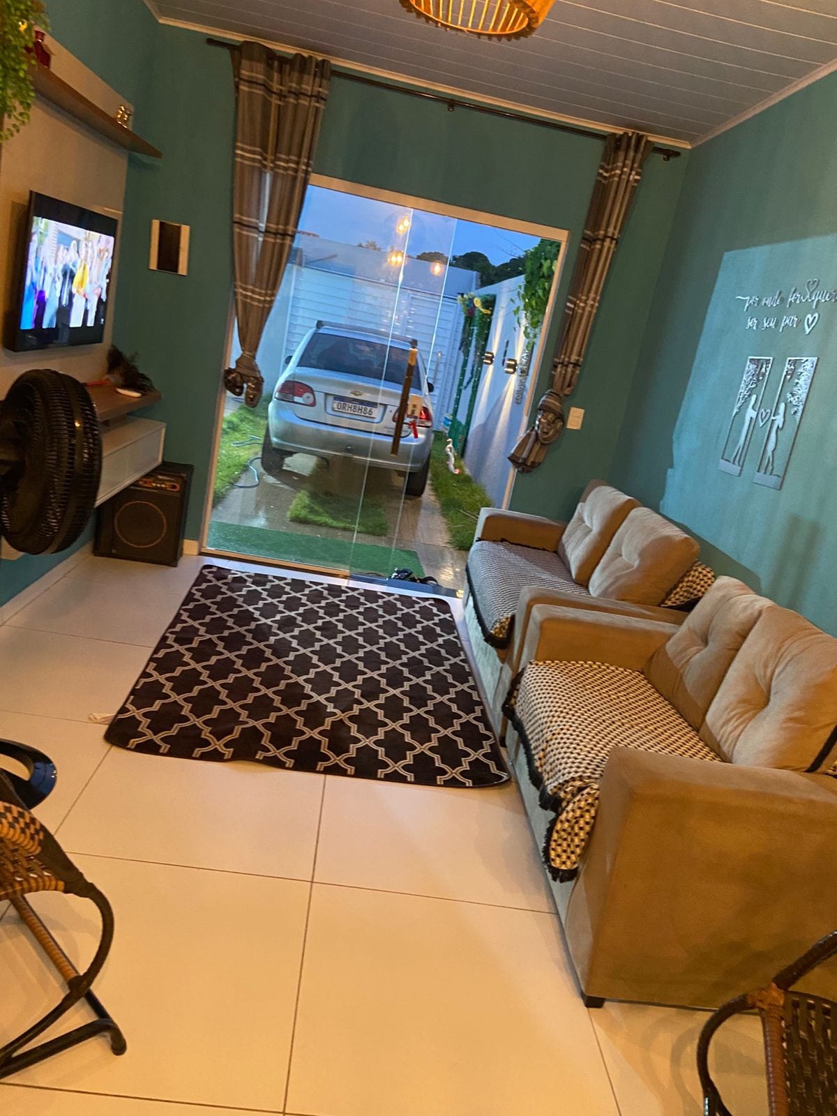 O chalé possui 01 quarto, cozinha, banheiro,sala e uma varanda bem arejada,a vila verde e um lugar bastante tranquilo muito arejado um belo jardim com redario,piscina , estacionamento area pra churrasco.muito bem localizada ,perto de farmácia, restaurantes,surpe mercado e fica 600metros da praia.OBS: não possui ar-condicionado e sim ventilador,possui máquina de lavar, geladeira, furgão,gelagua, lençóis,bancada para roupas enfim lugar simples mas aconchegante.