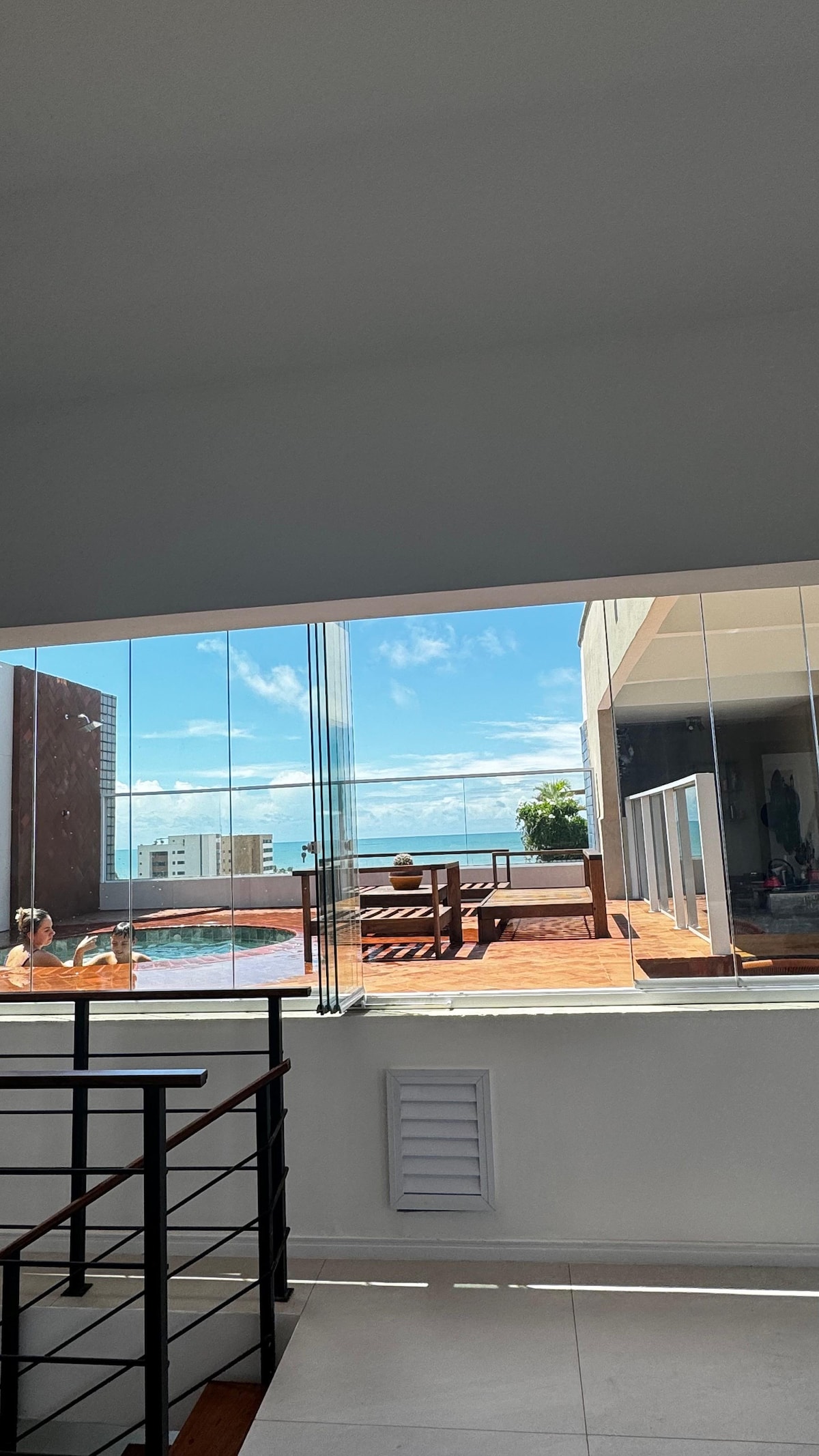Apto de 3 quartos , sendo uma suíte,com uma varanda incrível COM VISTA PARA O MAR. Nosso espaço foi pensado para proporcionar conforto e bem estar aos nosso hóspedes. Conta com Smart TVs, Wi-Fi 200MB, Netflix, ar condicionados em todos os ambientes, água quente nos chuveiros, cozinha equipada com itens básicos que você precisa para o preparo de refeições em família. Possui, ainda, VAGA DE GARAGEM.